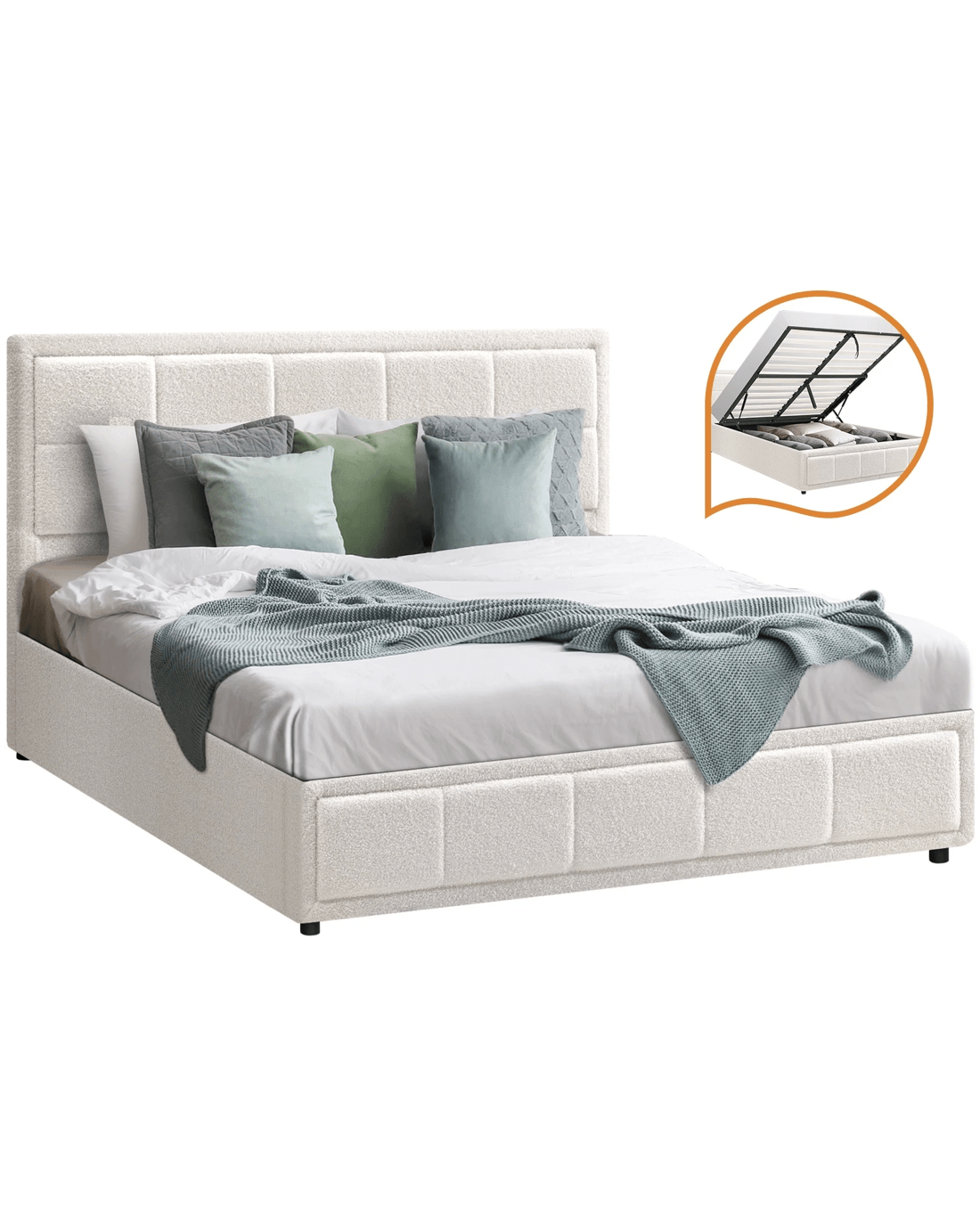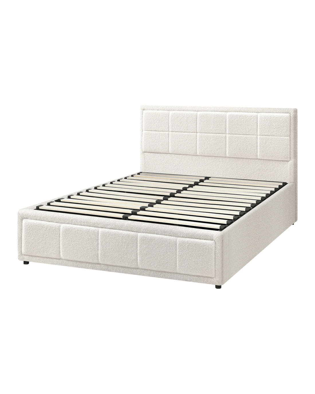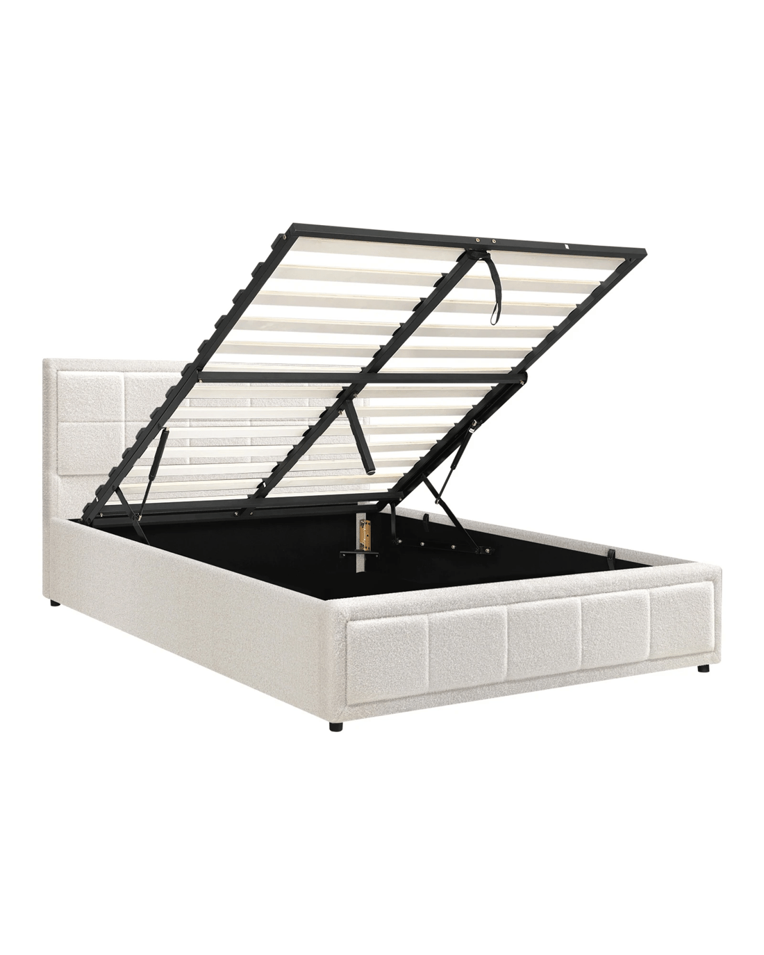 Sold by Kamprad's Oikos 1943Oikiture Queen Bed Frame Gas Lift Storage Base Boucle Fabric - White