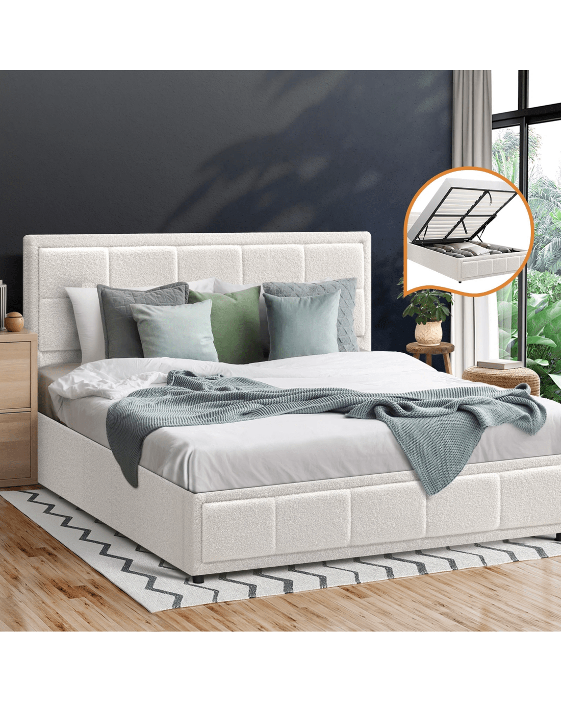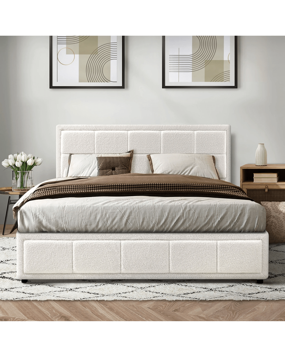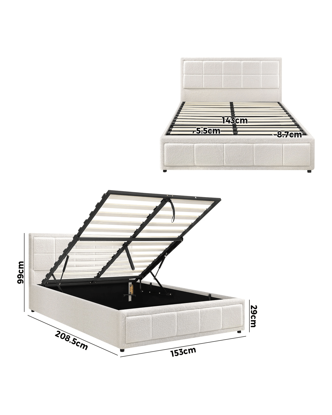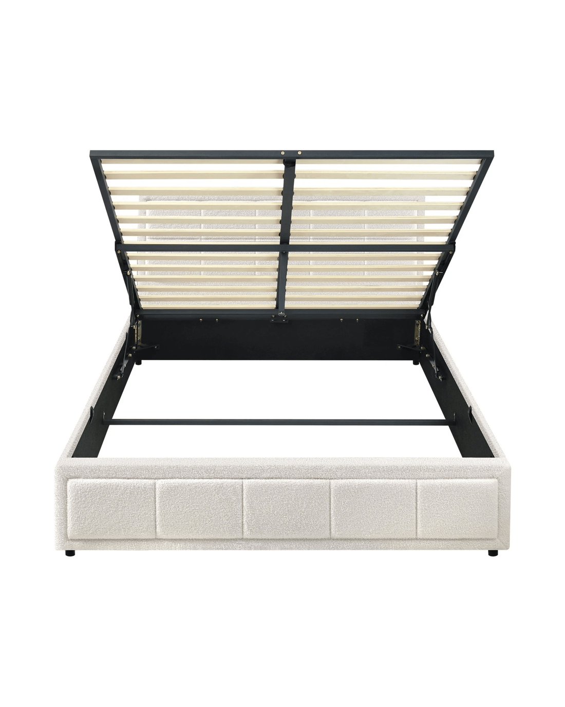 Sold by Kamprad's Oikos 1943Oikiture Queen Bed Frame Gas Lift Storage Base Boucle Fabric - White