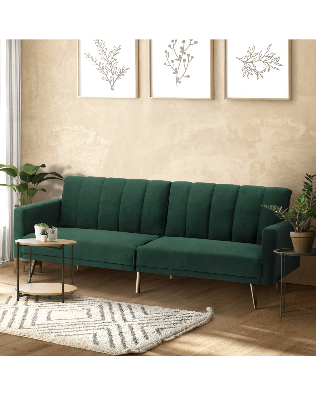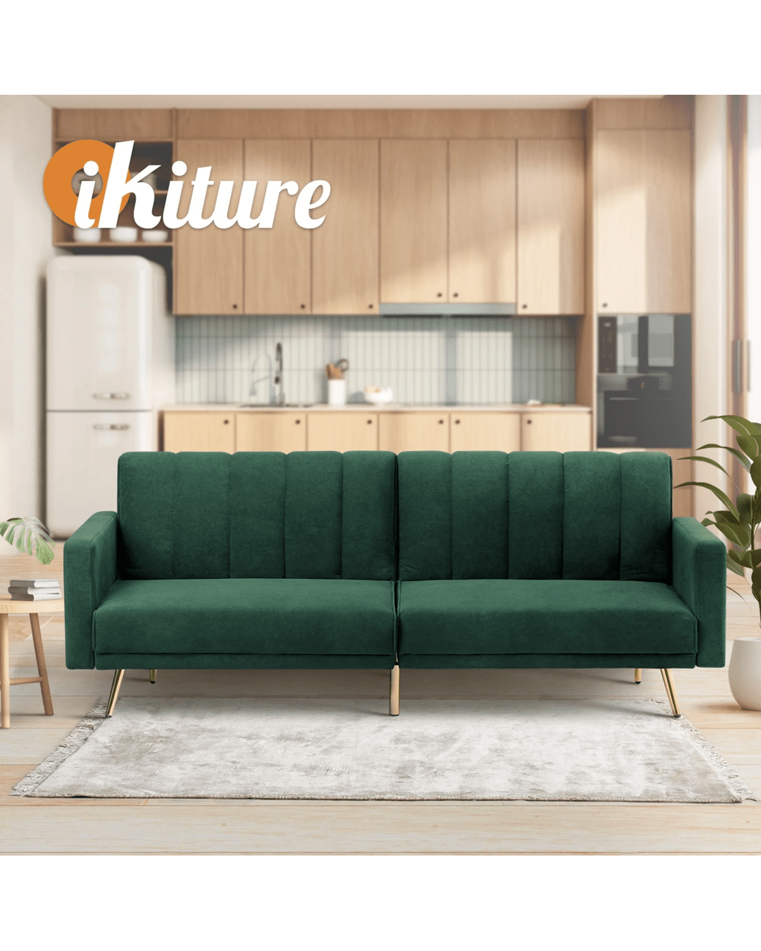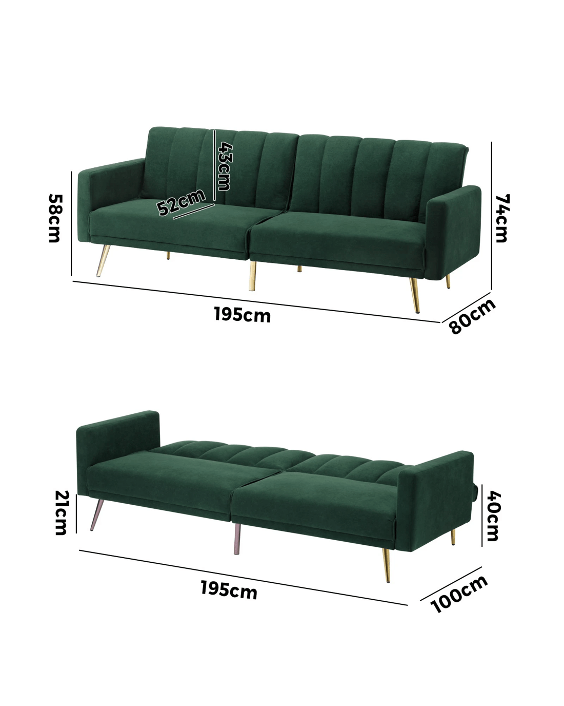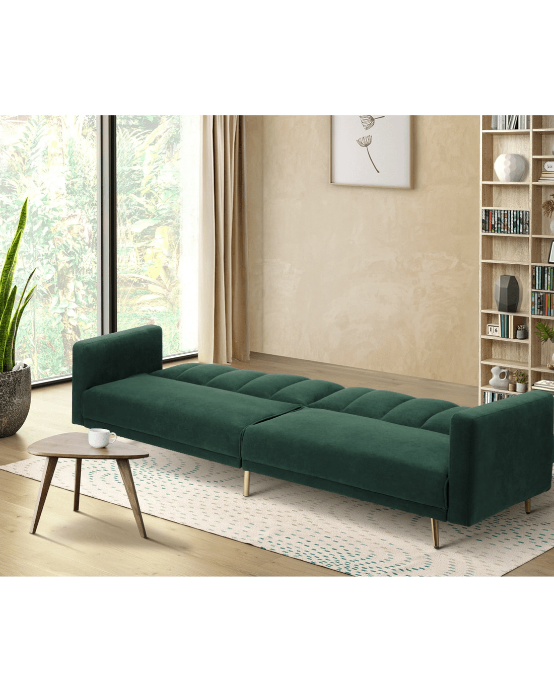 Sold by Kamprad's Oikos 1943Oikiture 3 Seater Sofa Bed Couch Convertible Lounge Recliner Beds Velvet - Green