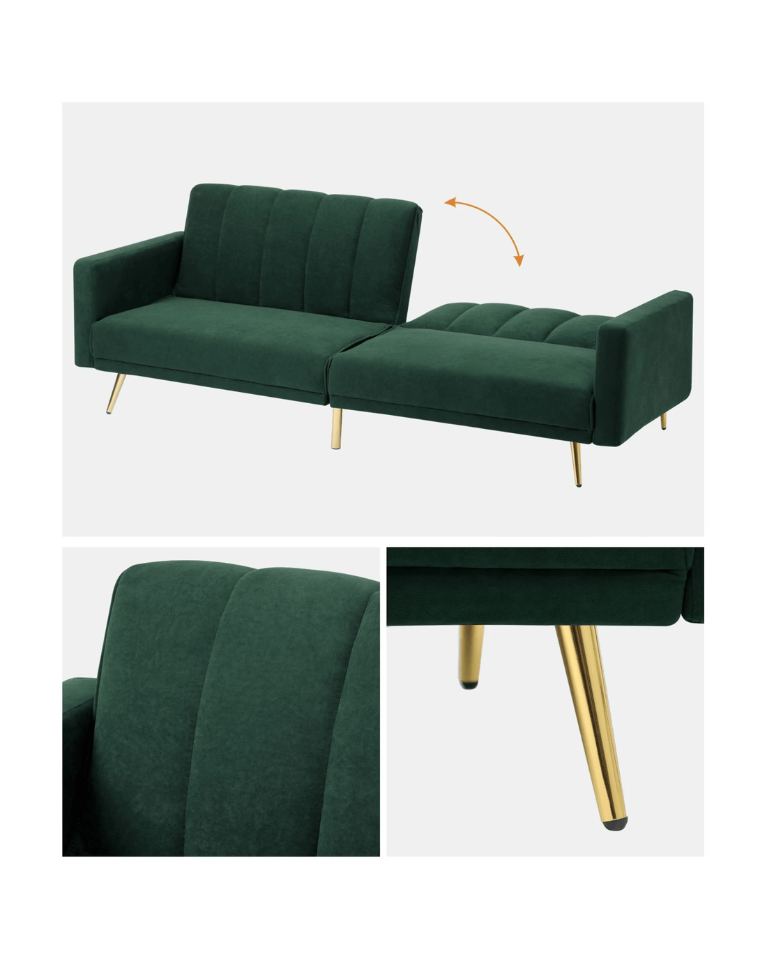 Beyond aesthetics, the versatile sofa bed is built to exacting standards with a solid wood framework supported by serpentine springs, thick-cushioned seats and augmented with golden chrome steel legs to add strength, stability and durability to its streamlined structure. The workmanship is meticulous and the stitching is first class with near flawless finishing and close attention to details. Simply amazing and pleasing to the senses from every angle. The Oikiture Sofa Bed is definitely a keeper in your home.