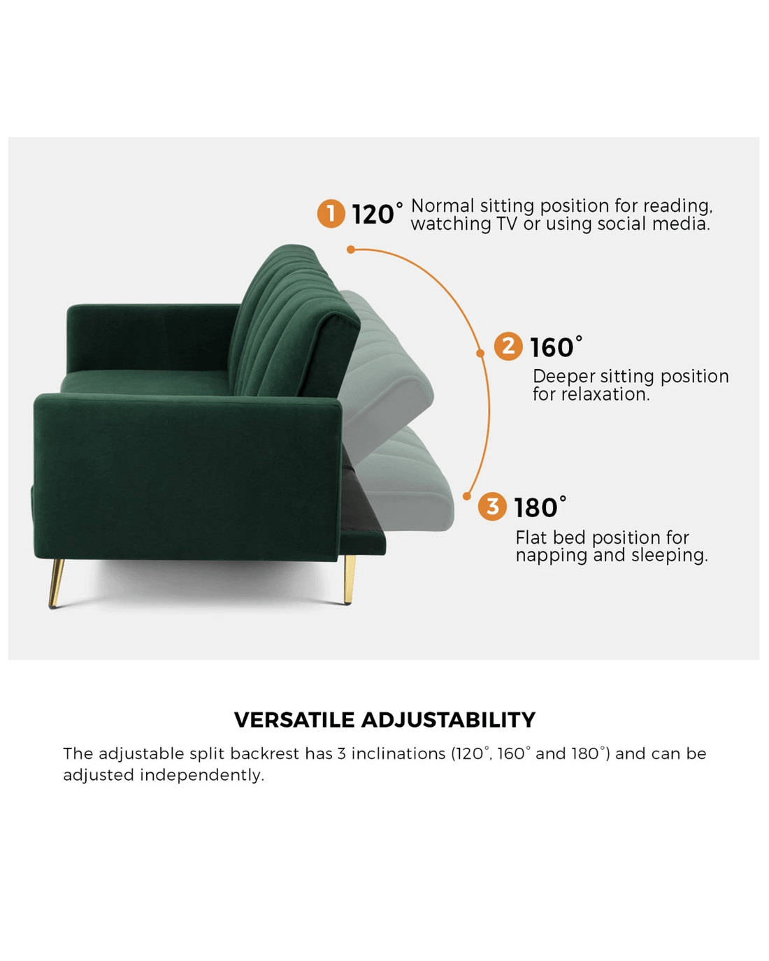 Equipped with three adjustable positions for the backrest, you can turn your sofa bed into the best seat in the house for watching TV, reading, or keeping up with your social media, or nestle it down for relaxation, napping or sleeping. Better still, the backrest can be adjusted individually to create a spilt backrest that lets you enjoy sitting and sleeping separately in one sofa. Work, sleep, relax and play. It is as good as it gets.
