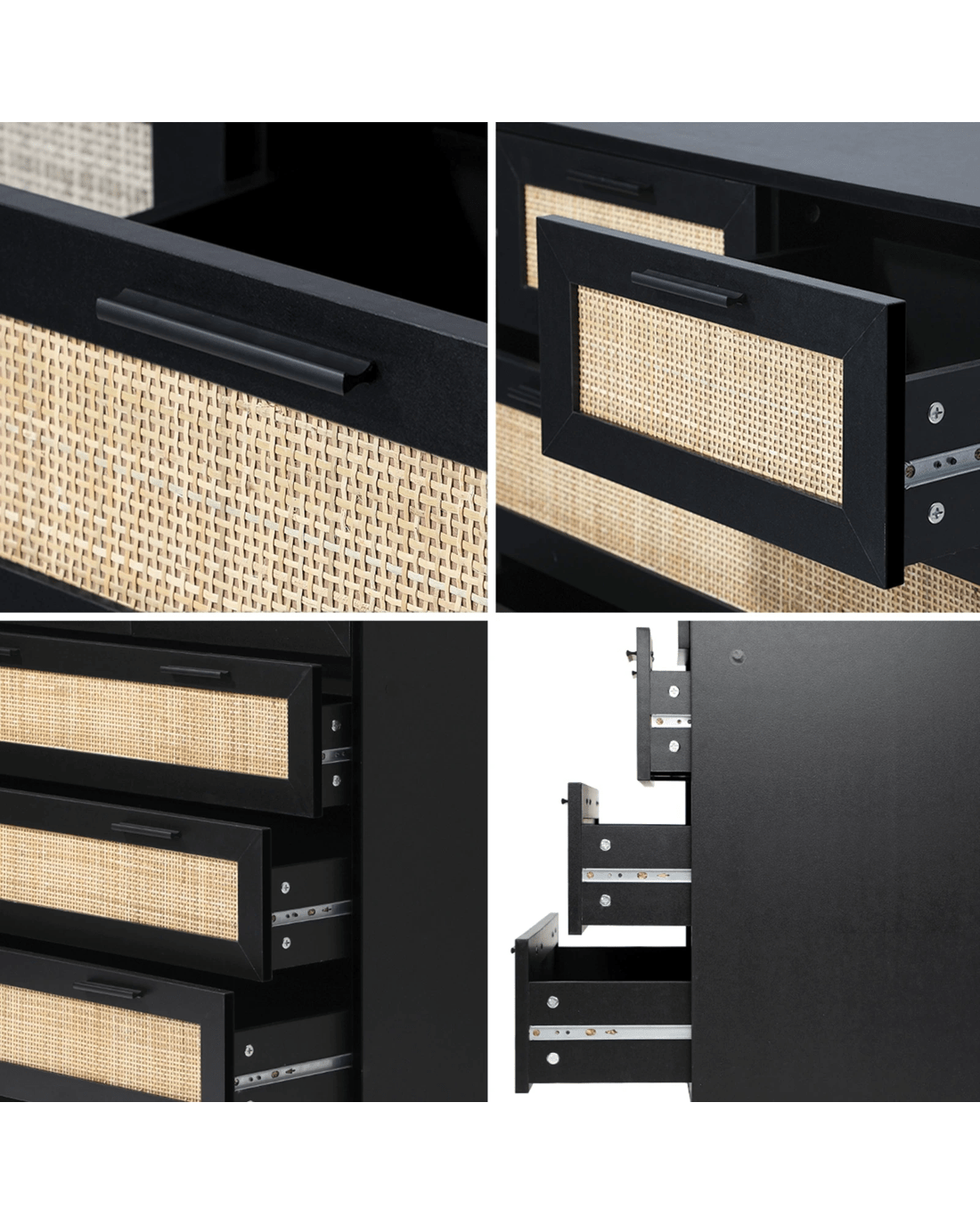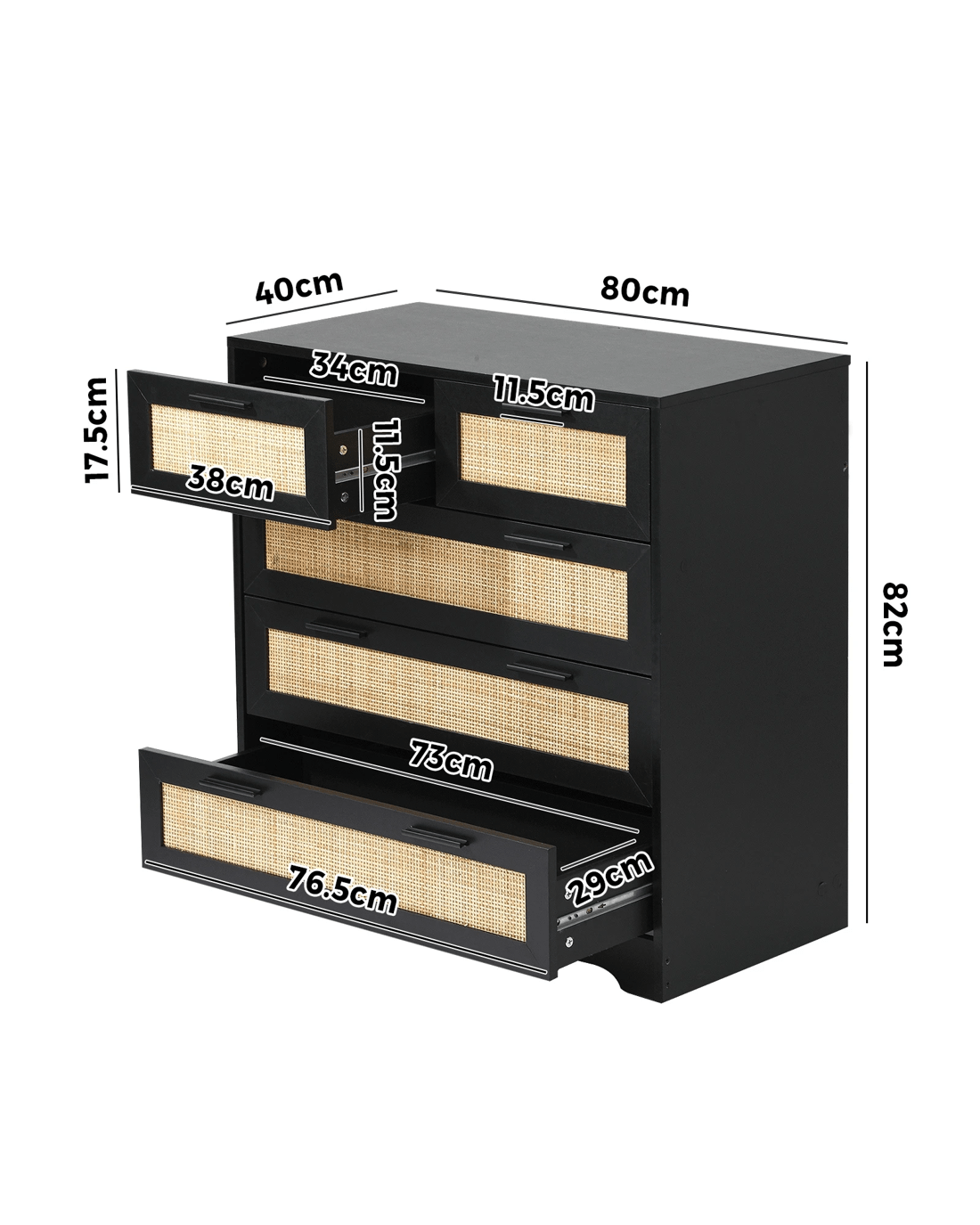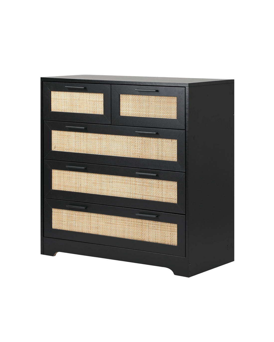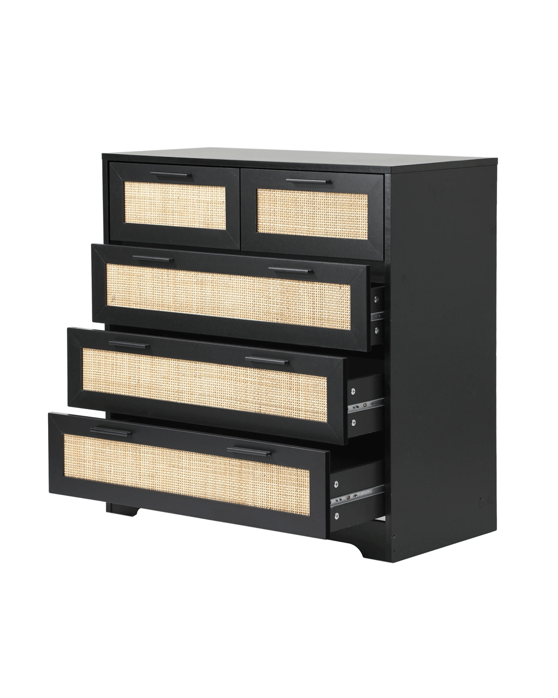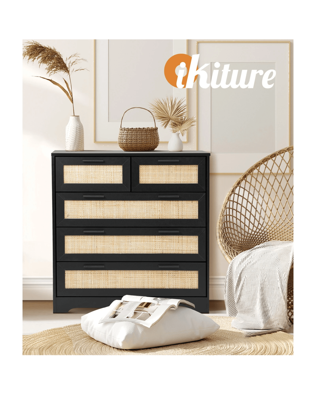 Sold by Kamprad's Oikos 1943Oikiture 5 Chest Of Drawers Dresser Storage Cabinet Tallboy Rattan - Black