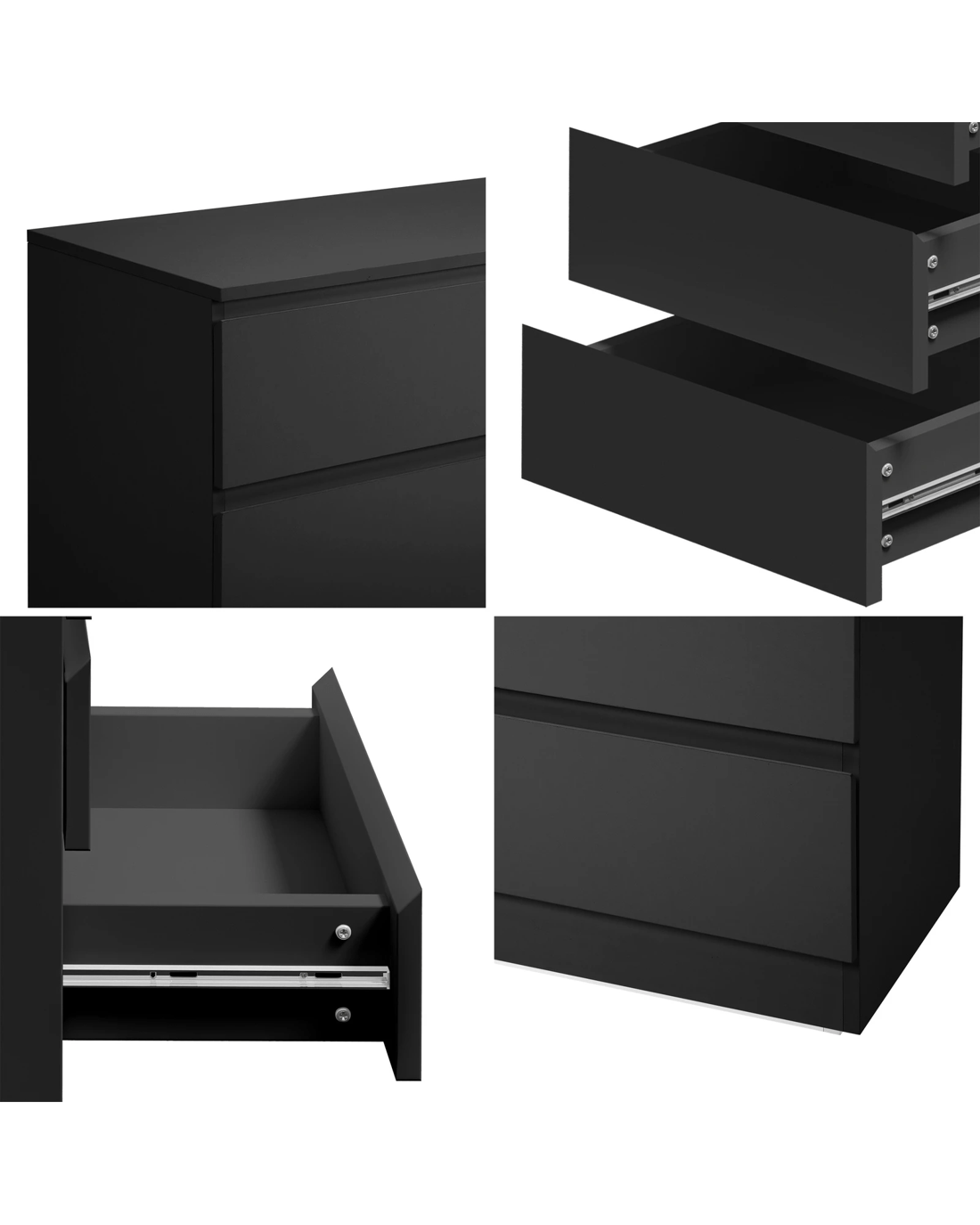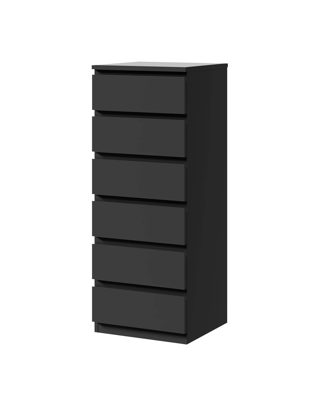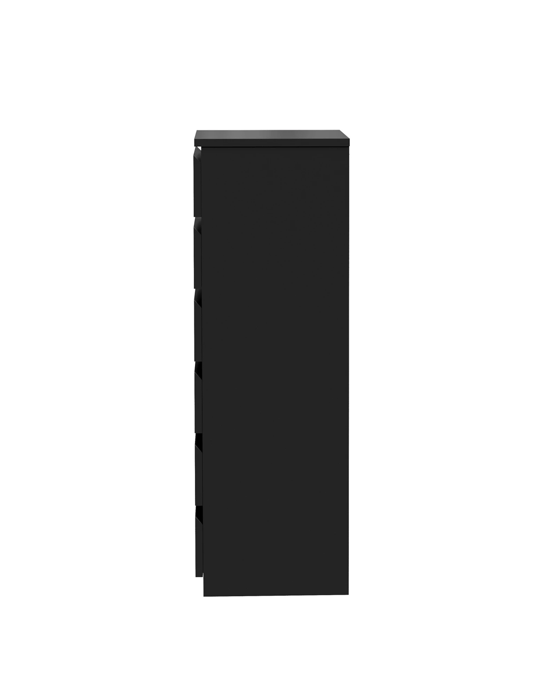 Immerse your space in minimalist chic with the streamlined silhouette of our handle-free chest, now in a crisp black hue. The absence of handles not only contributes to the uncluttered aesthetic but also highlights the beauty of simplicity. This chest of drawers embodies contemporary elegance, offering a clean and modern look that is both stylish and practical.