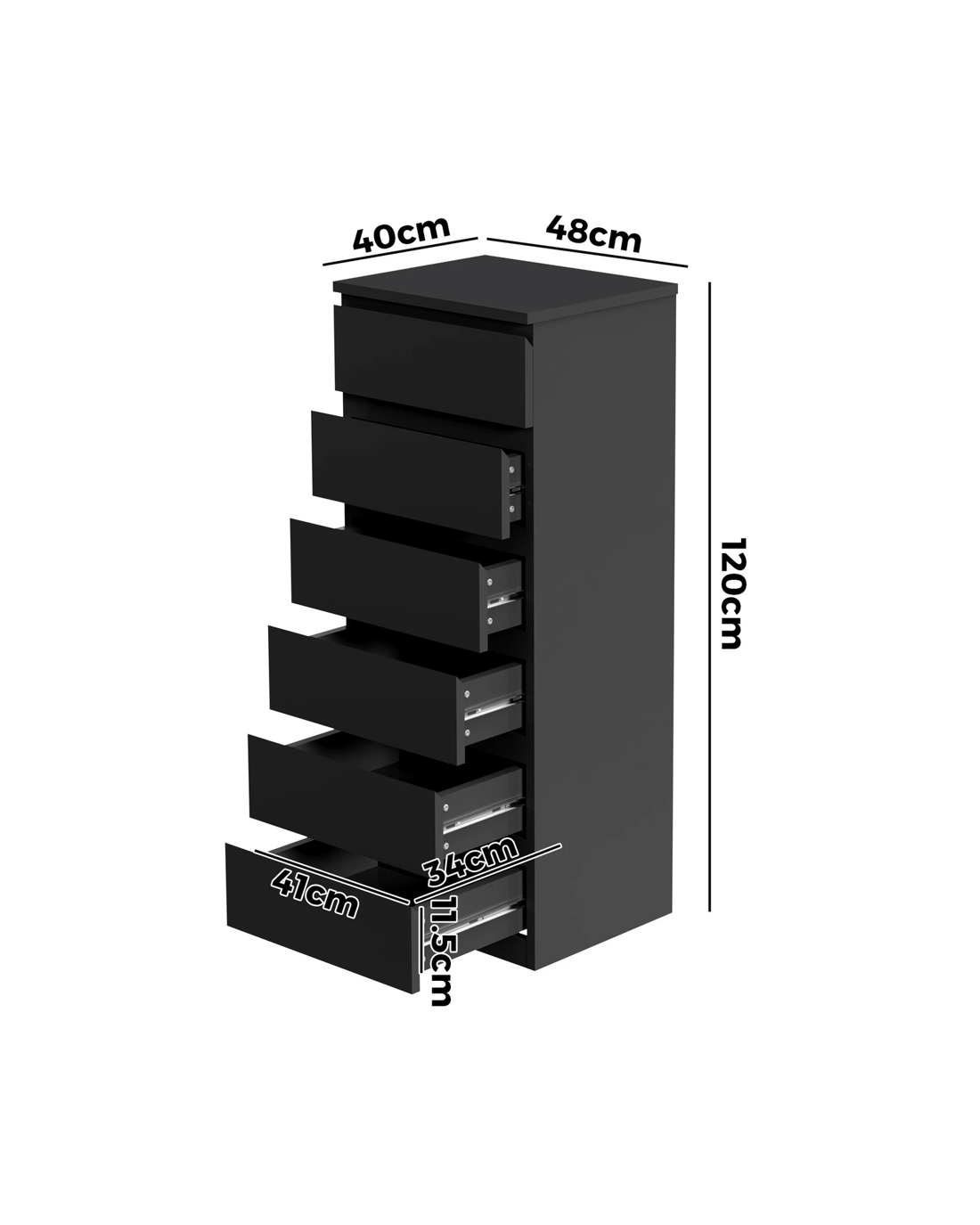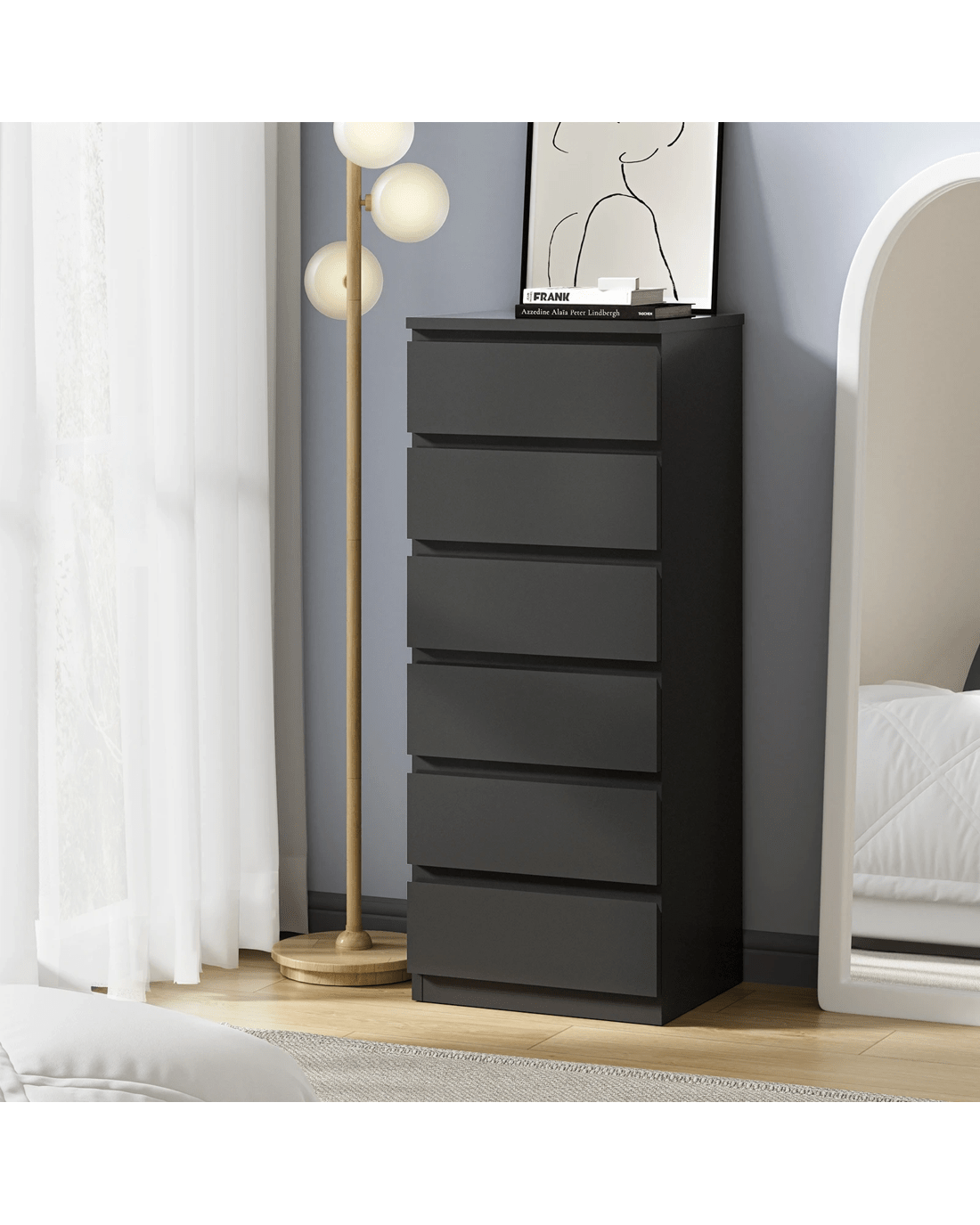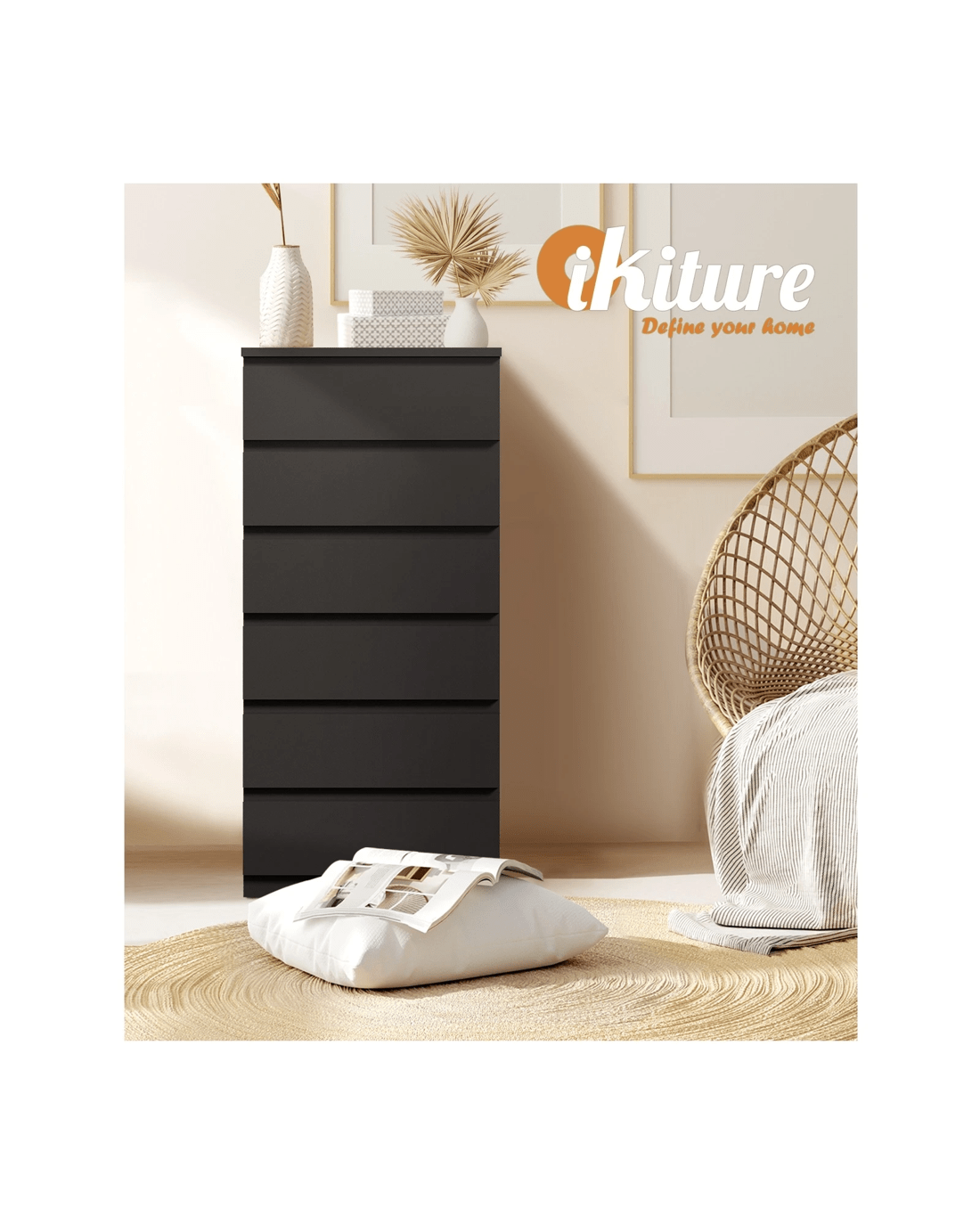 Sold by Kamprad's Oikos 1943Oikiture 6 Chest Of Drawers Tallboy Dresser Table Storage Cabinet - Black