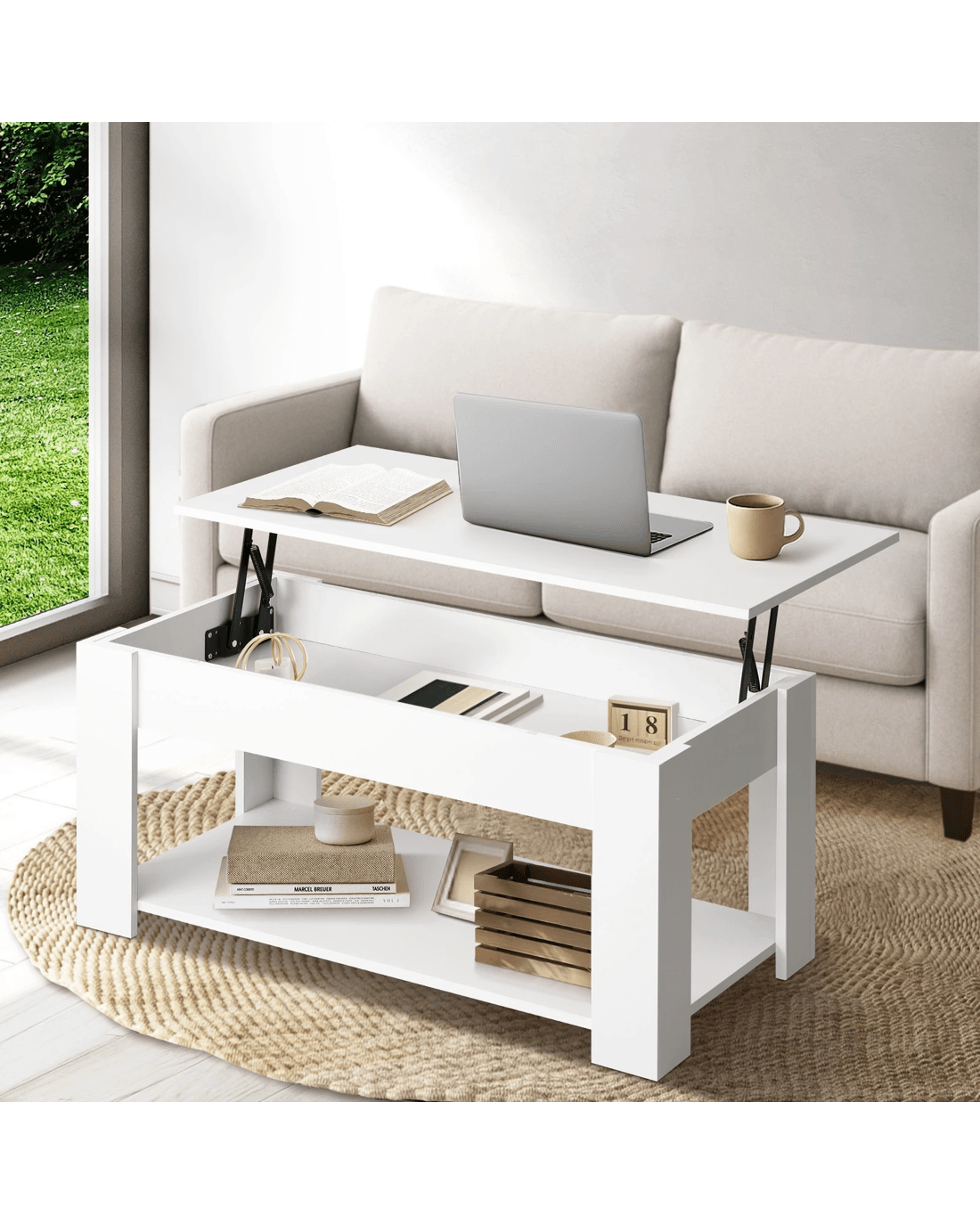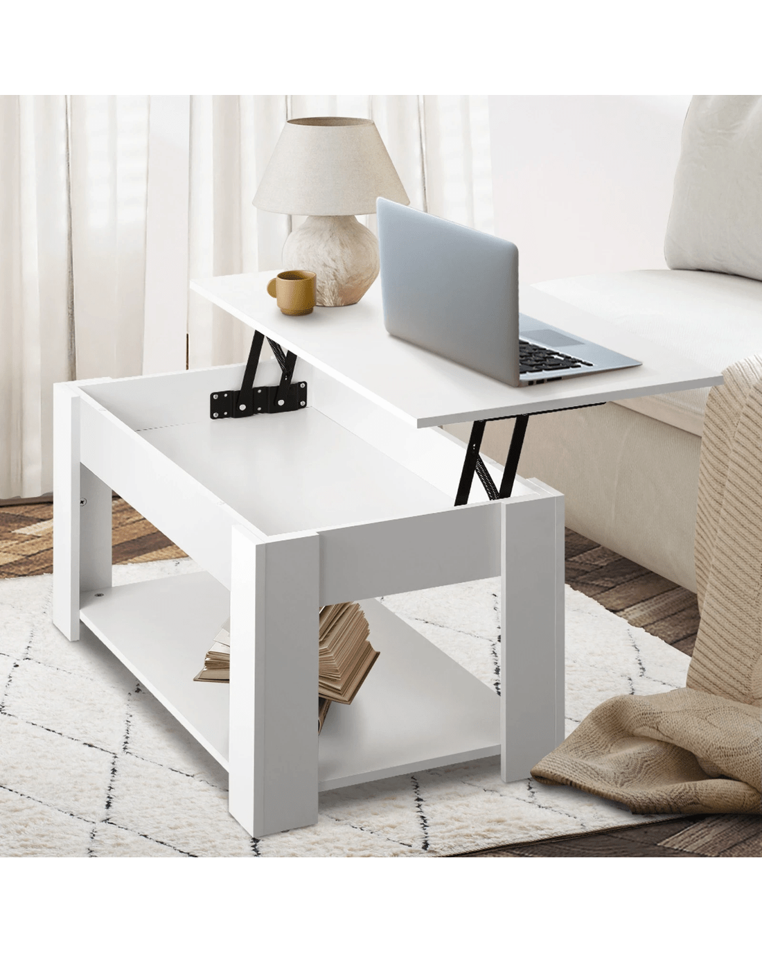 Sold by Kamprad's Oikos 1943Oikiture Coffee Table Lift Up Top Modern Tables Hidden Book Storage - White