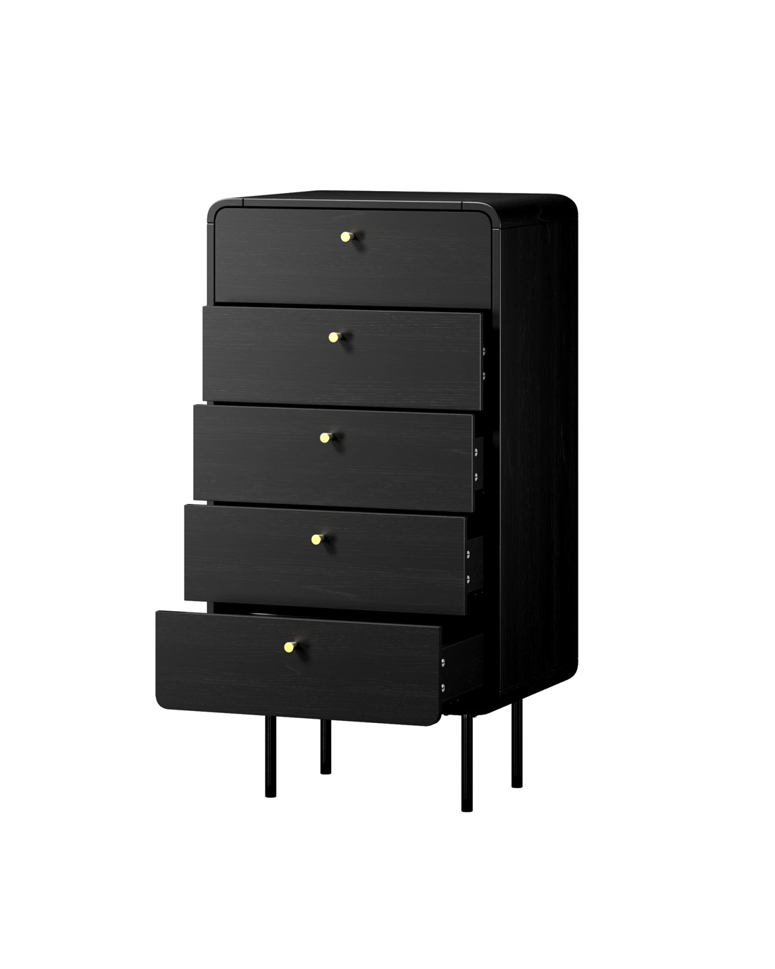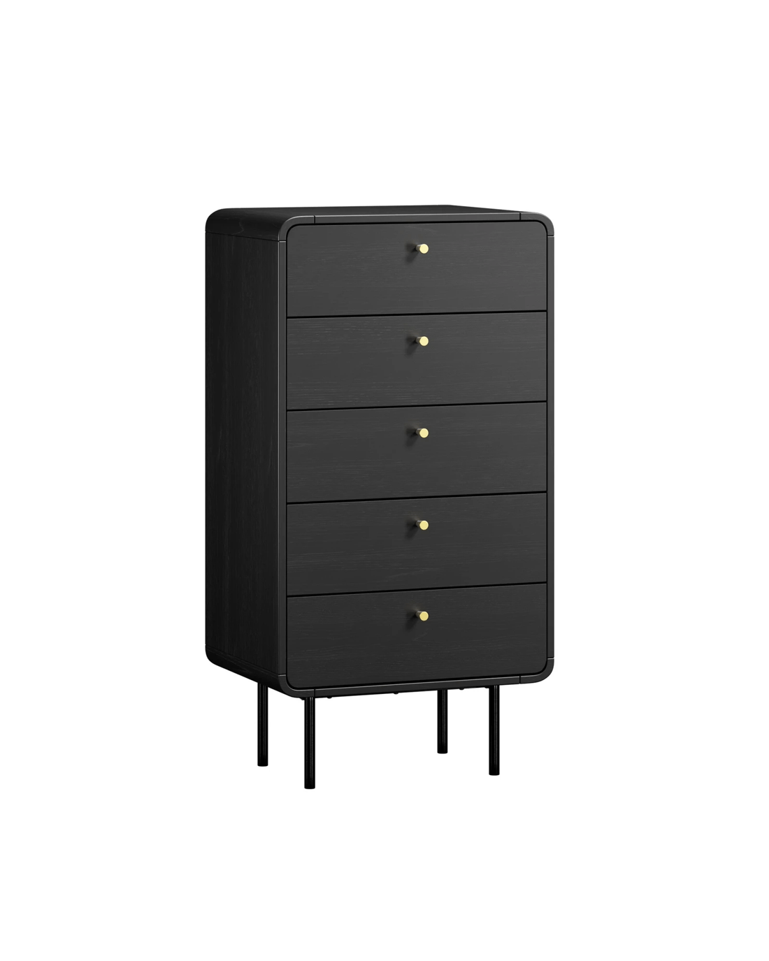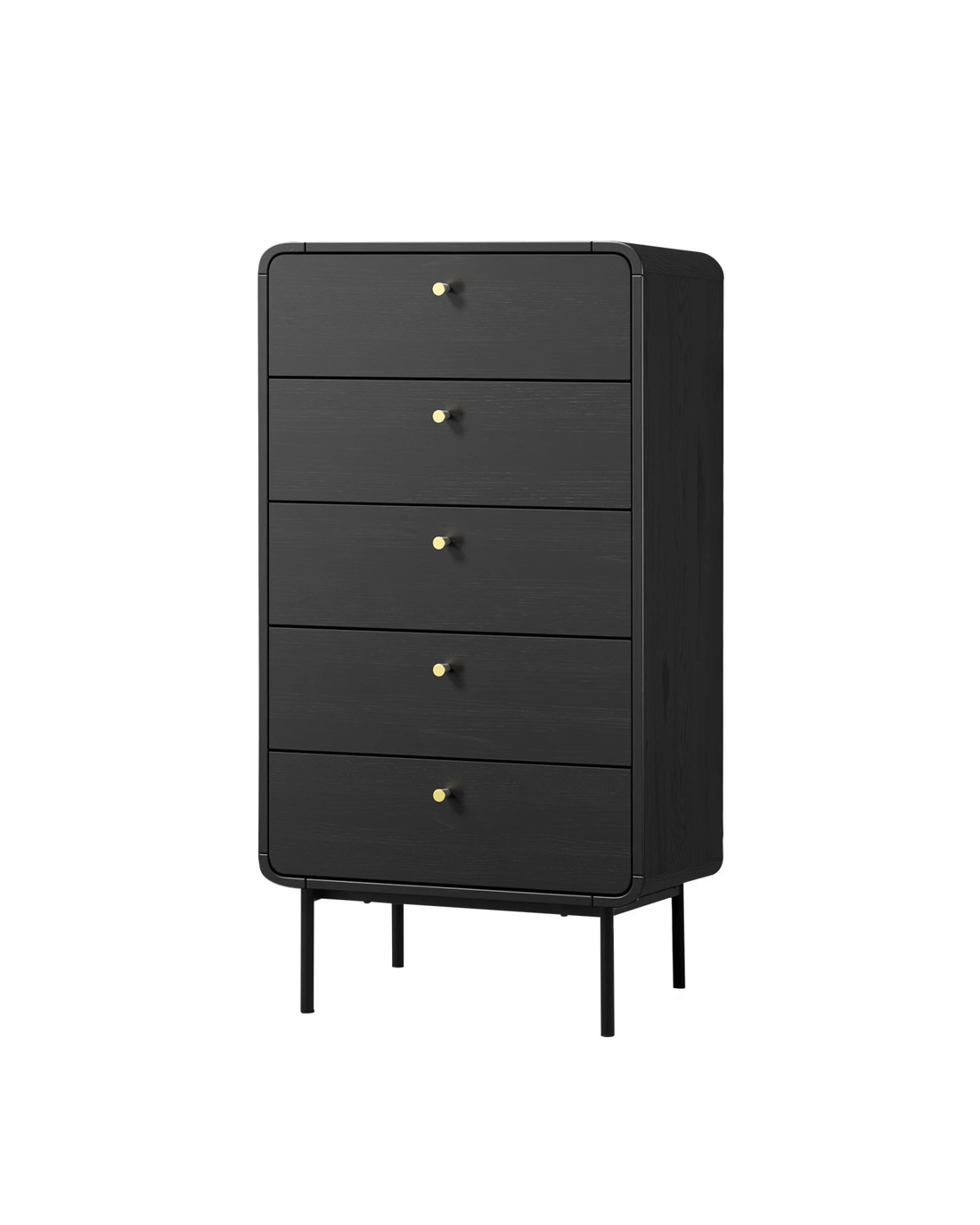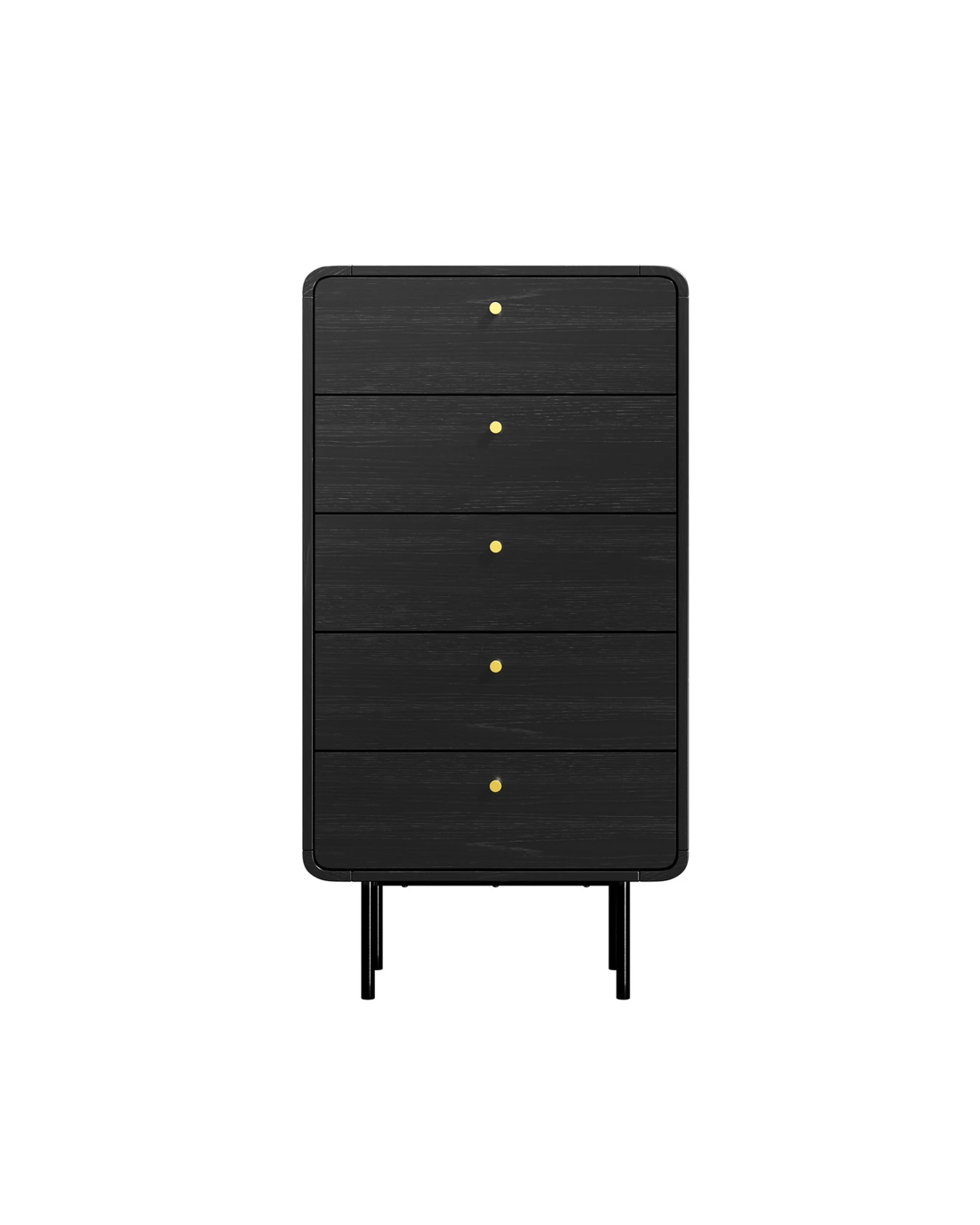 The five large drawers provide cavernous storage space while the capsule-inspired metal handle on each drawer ensures hassle-free effortless opening and closing, especially when laden with a generous amount of storage items. Plus, you'll be assisted by the smooth metal runners that make using this chest of drawers a breeze and never a chore.