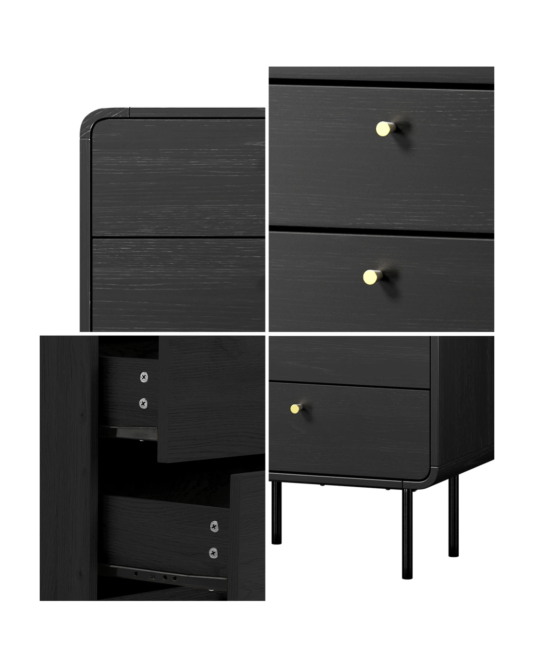 Constructed with 15mm particle board, the chest of drawers maintains a good sense of structure and durability. Plus, the sturdy metal legs frames are strong to the task and make for easy cleaning underneath the chest of drawers. The attention to detail is meticulous, evidenced by the fine workmanship from top to bottom.