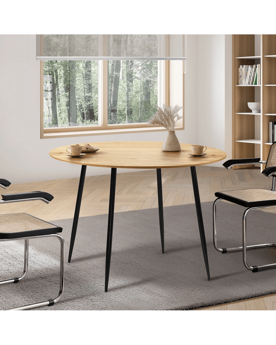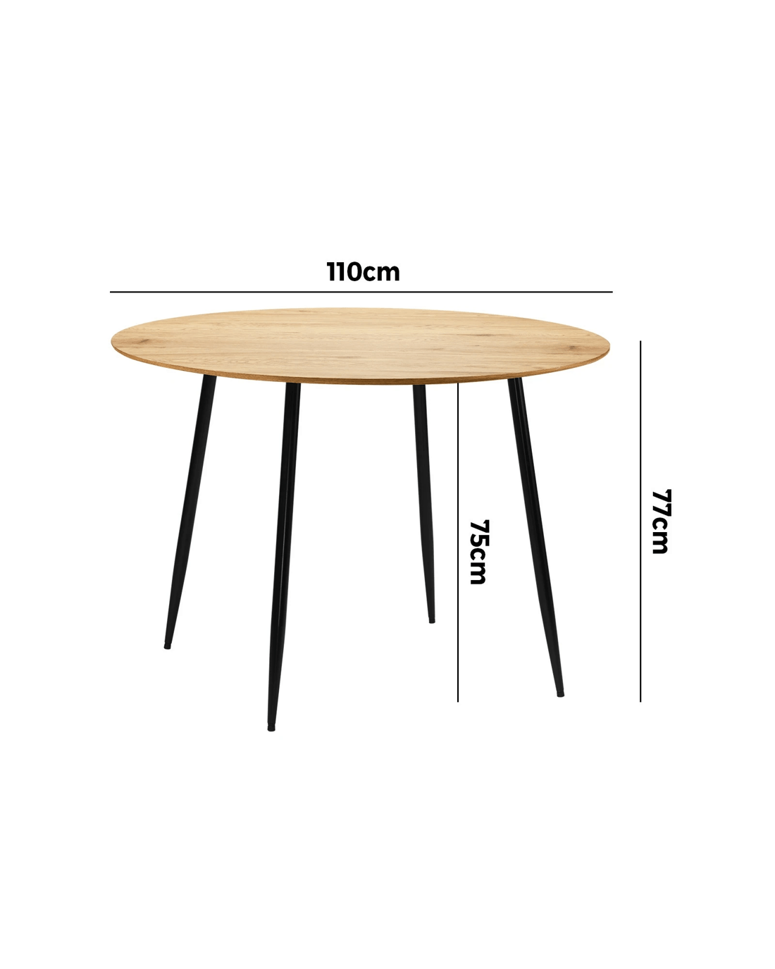 Sold by Kamprad's Oikos 1943Oikiture 110cm Dining Table Round Wooden Table With Metal Legs Wooden - Multi