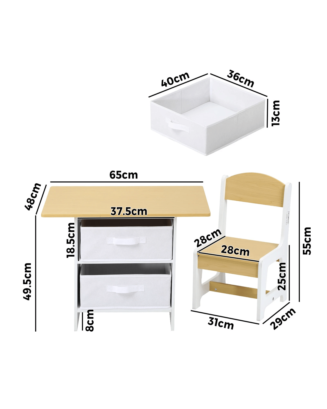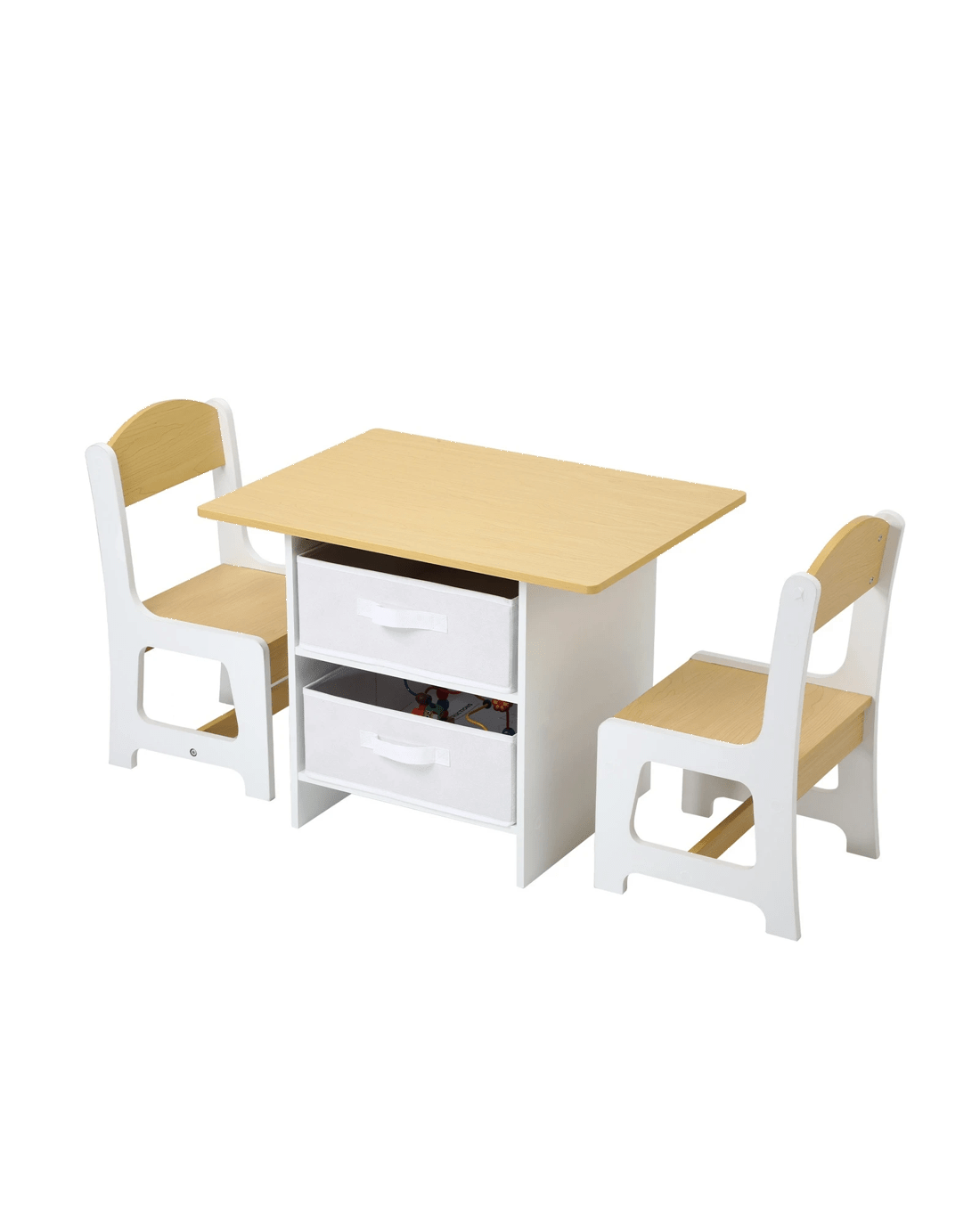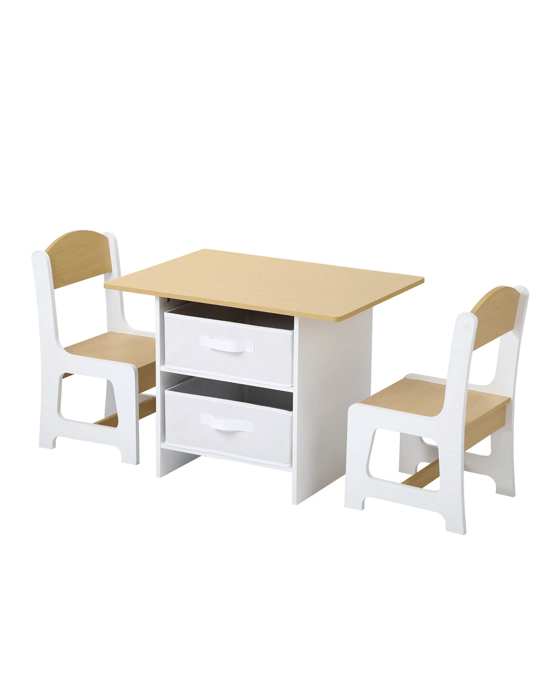 Sold by Kamprad's Oikos 1943Oikiture Kids Table And Chairs Set Wooden Play Study Desk With Toy Storage Box - Natural