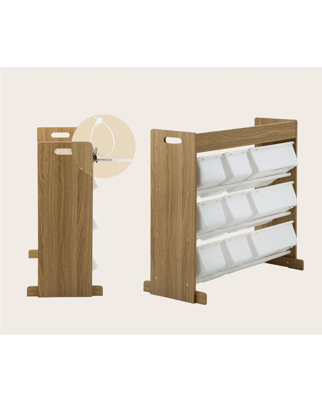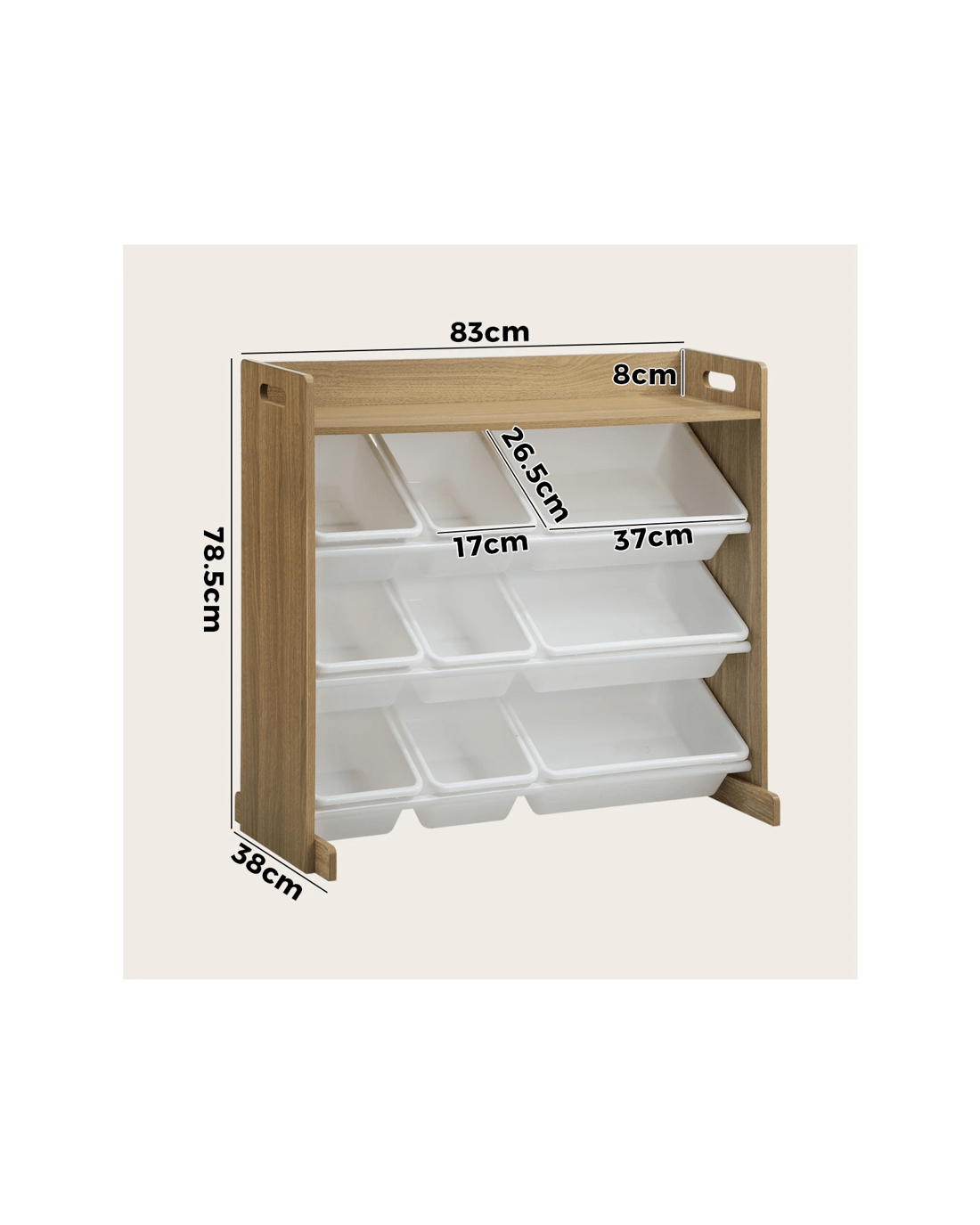 Not least, its pleasant wood, plastic and metal combination design and meticulous finishing also enable hassle-free cleaning and maintenance for long-lasting use. And don't just stop at one. Get two or more of this useful kids storage organiser for multifunctional storage in specific locations, or even to act as versatile space dividers that will really blend well with any kid's room decor.