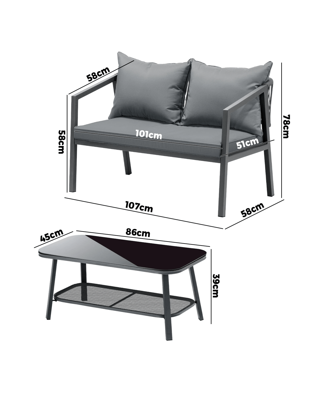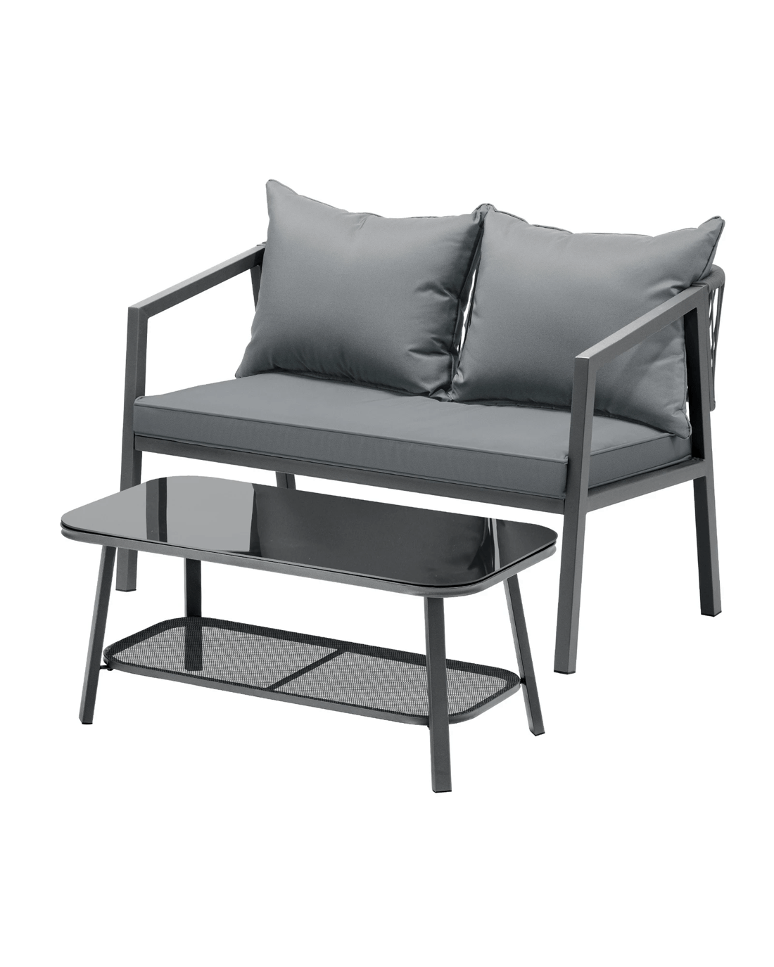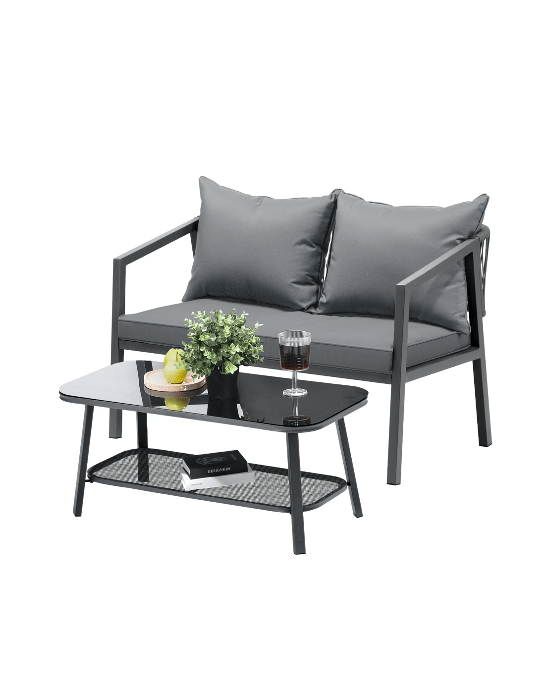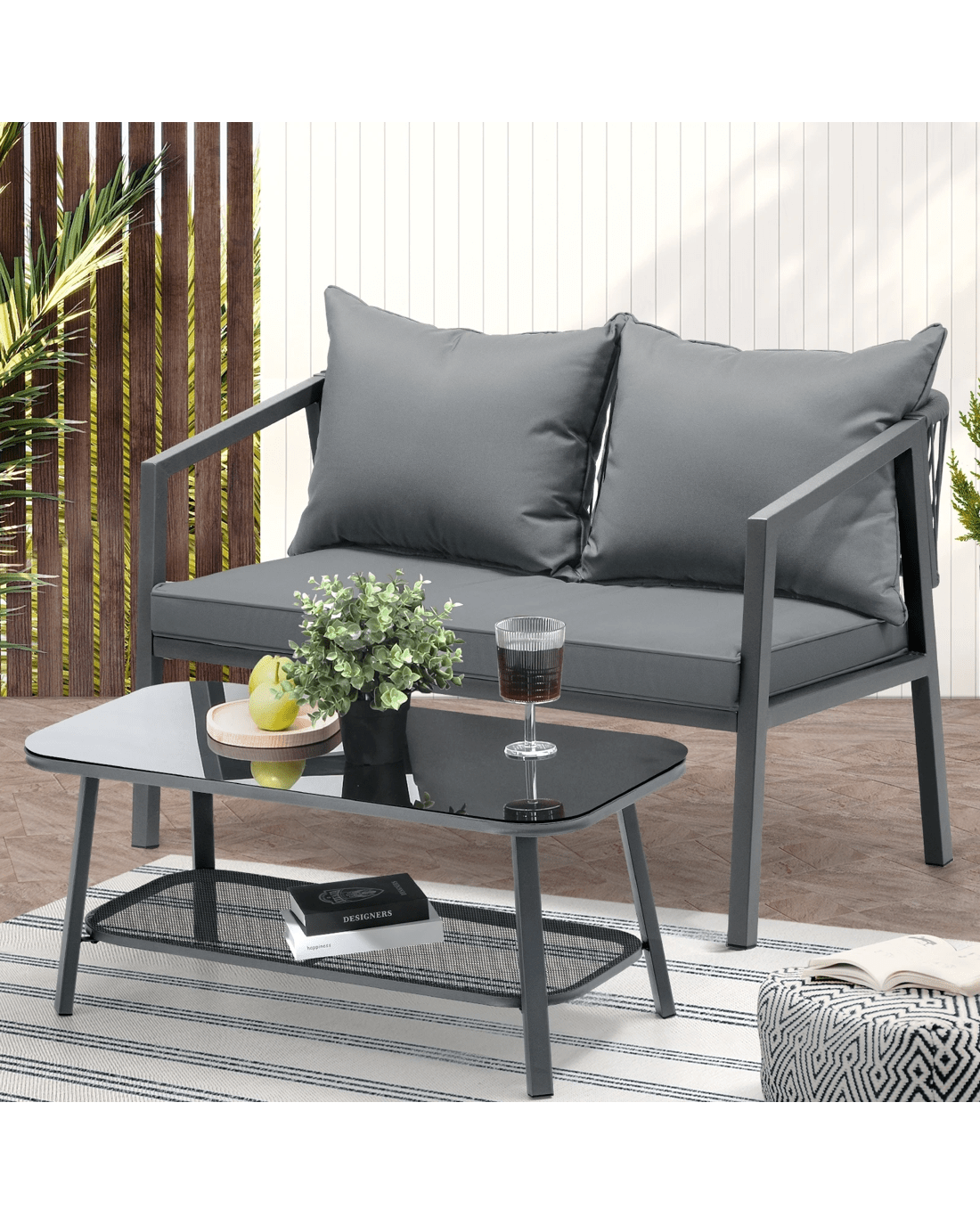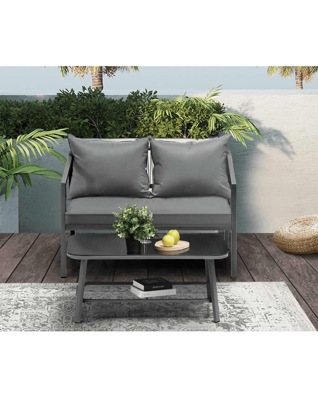 Sold by Kamprad's Oikos 1943Livsip Set Of 2 Outdoor Furniture Setting Garden Patio Lounge Sofa Table Chairs - Grey