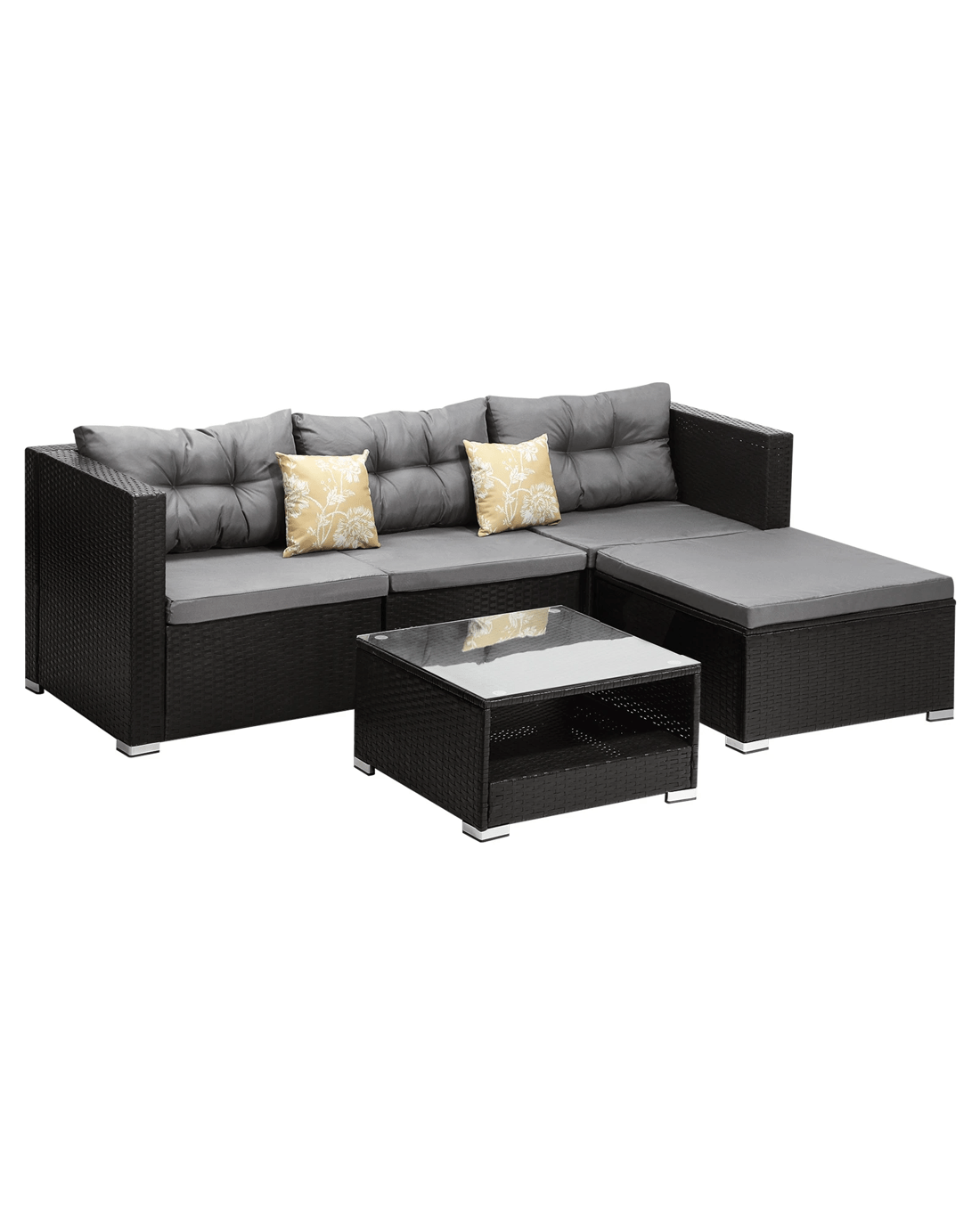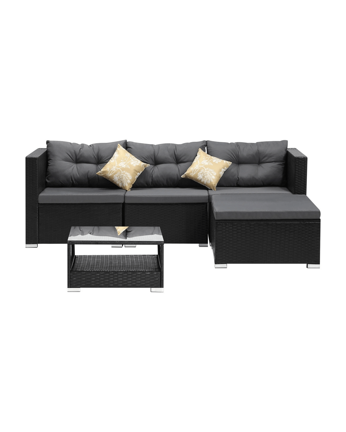 Sold by Kamprad's Oikos 1943Livsip Outdoor Sofa Set 4 Seater Corner Modular Lounge Setting Patio Furniture - Black