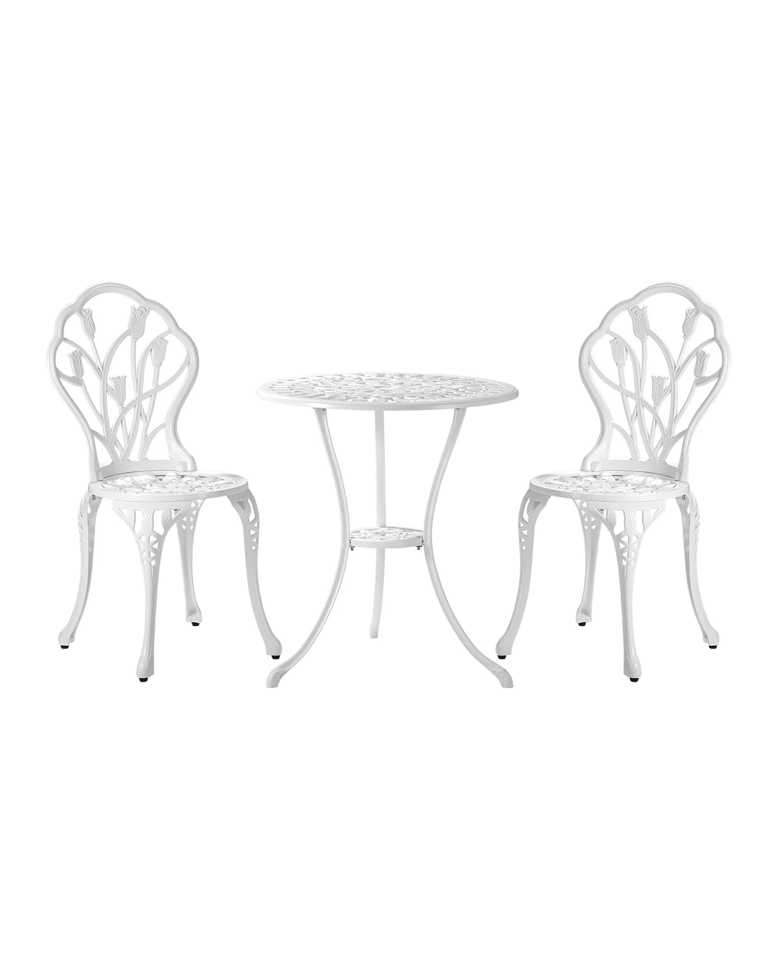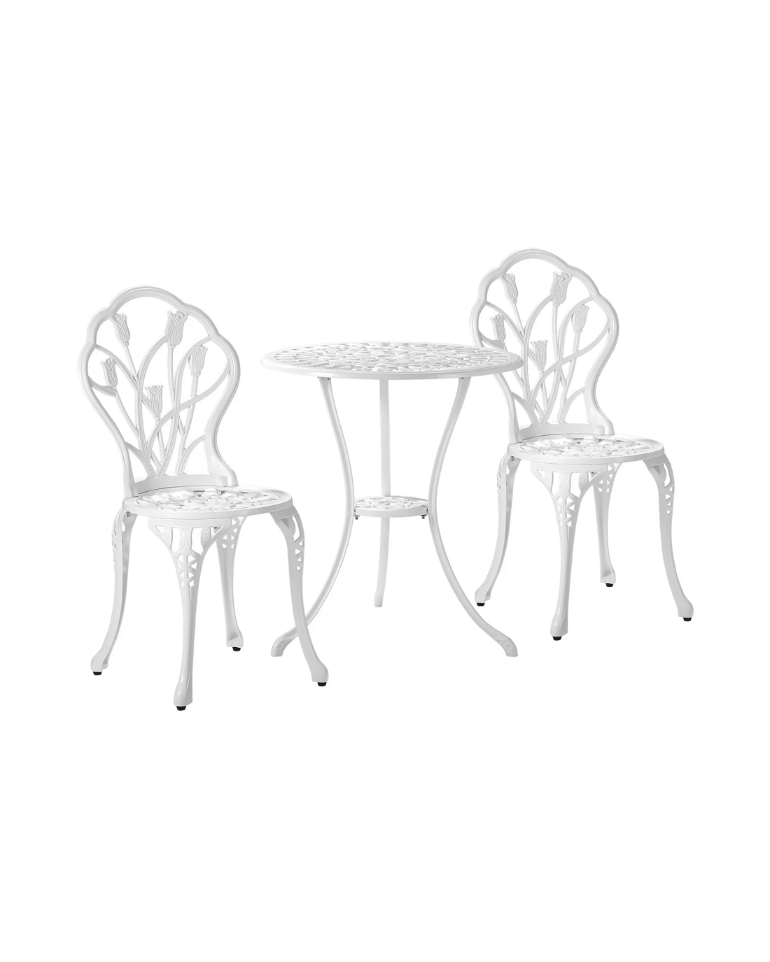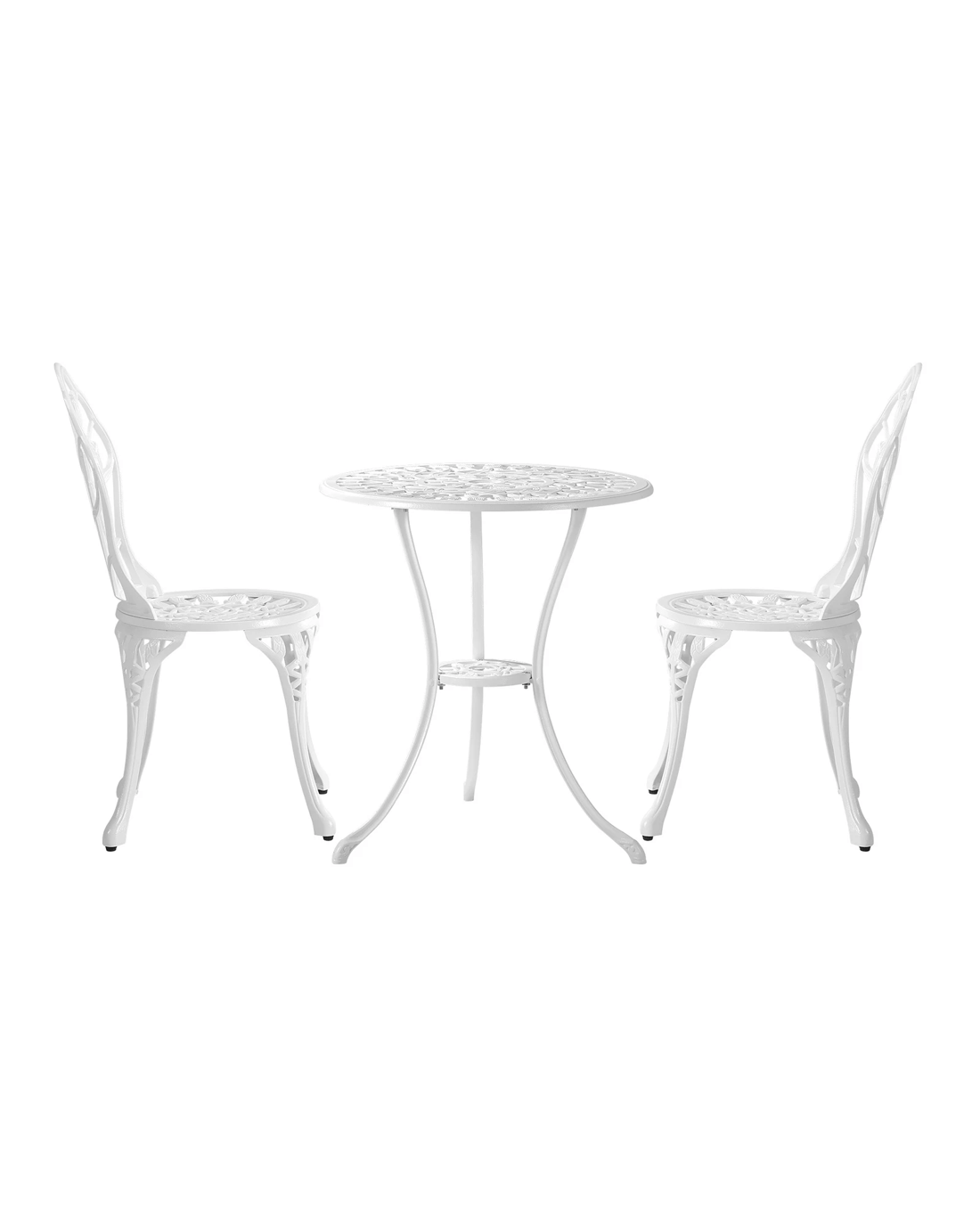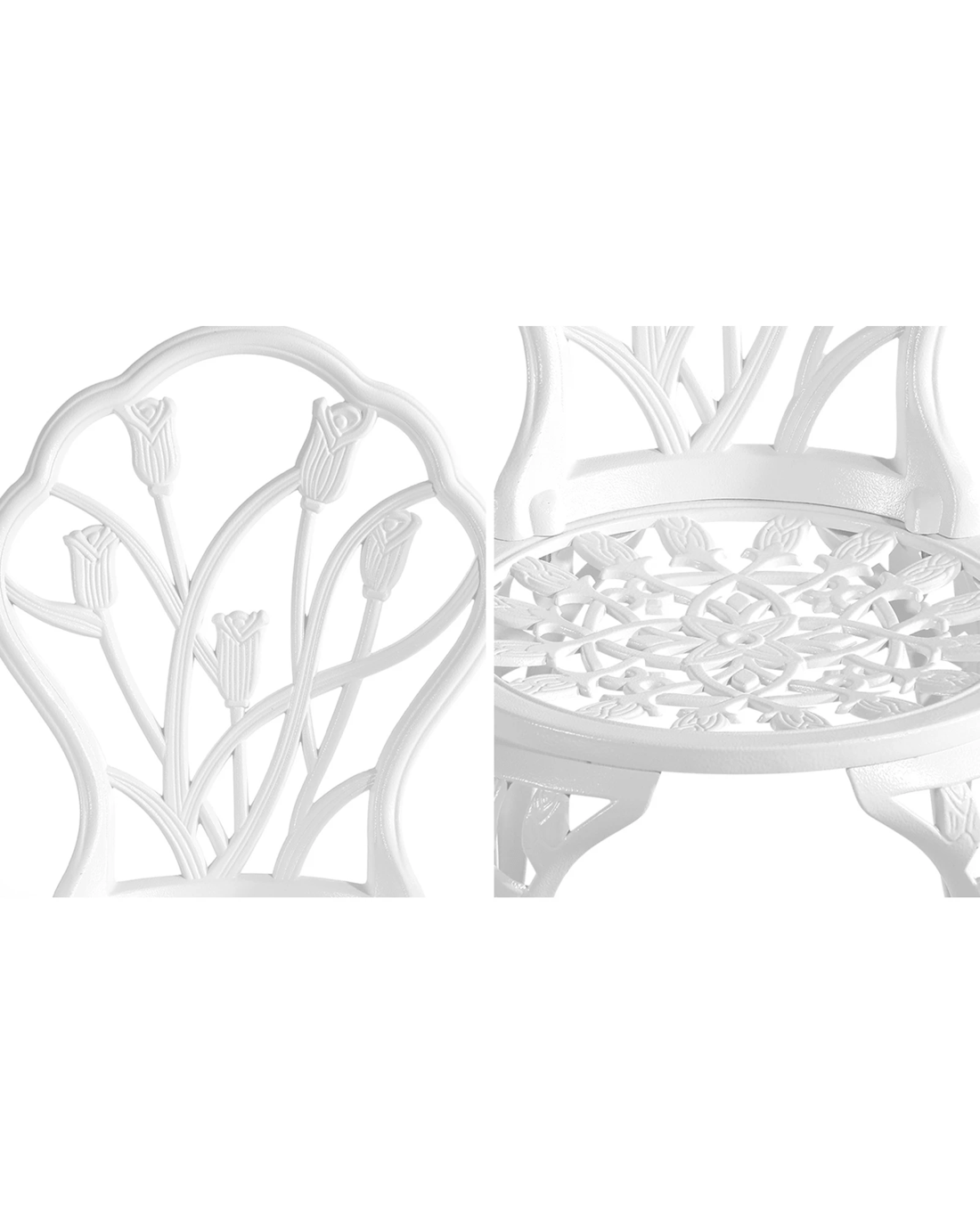 With its meticulous craftsmanship in showcasing the intricate design work, the bistro set is exceptionally stunning with every curve and motif. The Victorian-inspired craftwork is clearly displayed. From its sculpted profile to the detailed pattern etchings, the table and chairs are simply beautiful in every aspect.