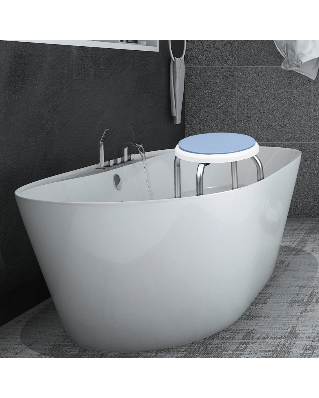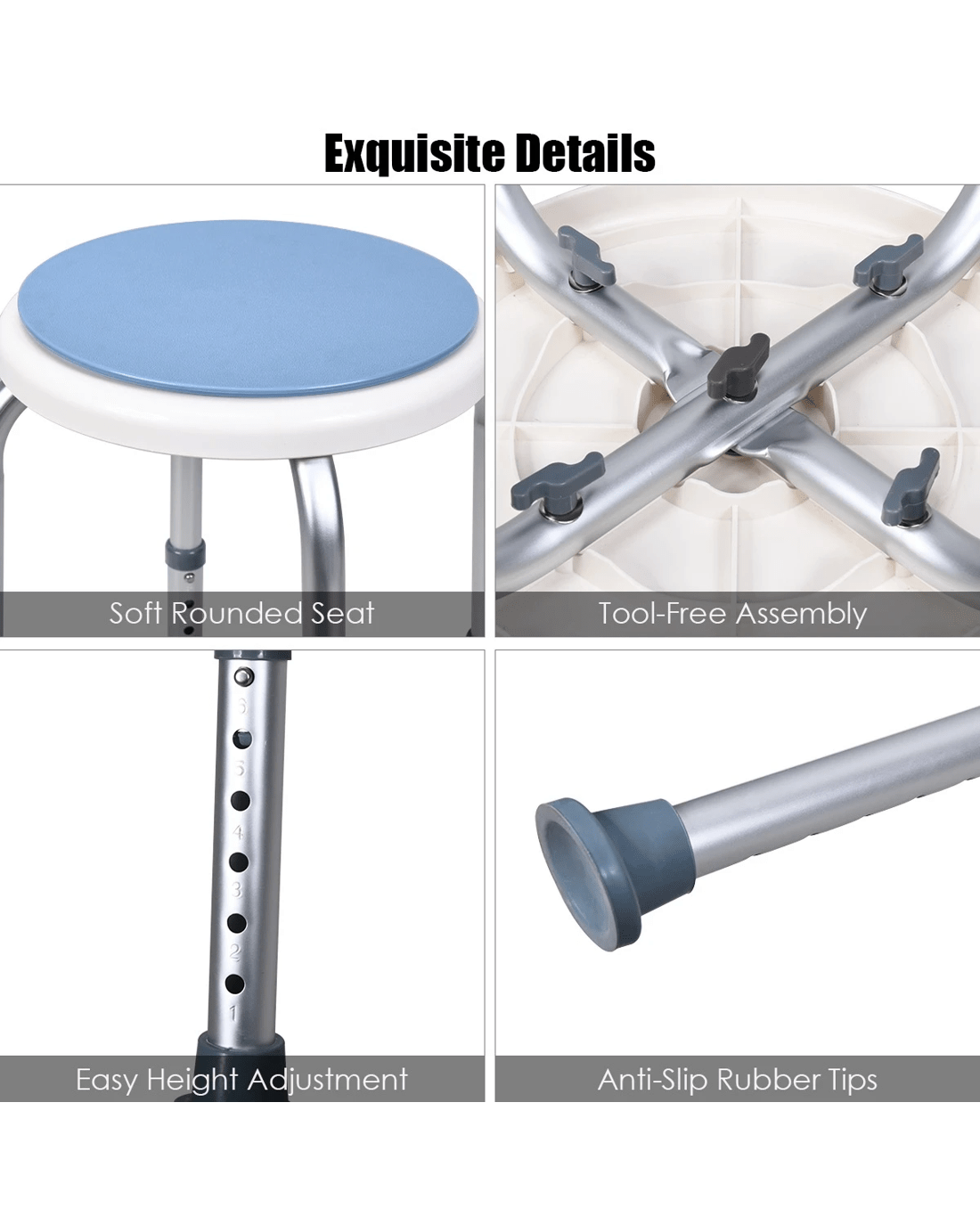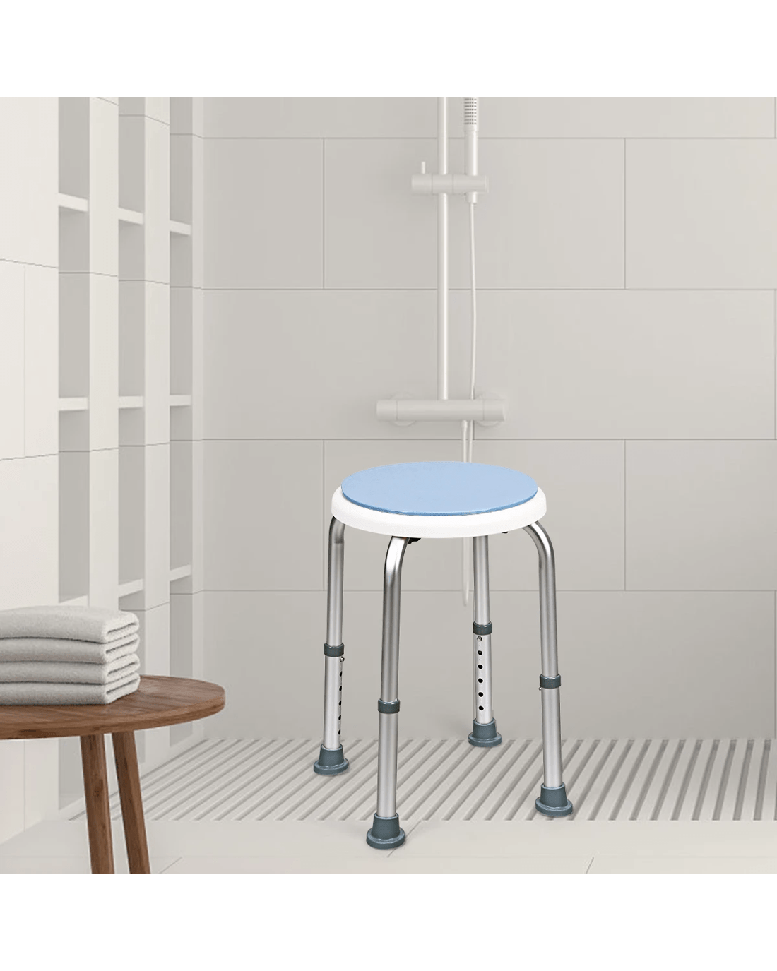 The 360° rotating shower stool will be a good solution to those who with limited mobility due to some reasons and faces inconvenient shower in daily life. Sitting on the 360° rotating seat, you will obtain a relaxing and comfortable shower experience. Height-Adjustable legs allow you to customize the shower stool based on your own requirements and preference. Aluminum structure featuring rust resistance makes the shower stool keep shiny surface all the time. High weight capacity and ultra stability eliminate your fear of wobbling. Furthermore, tool free assembly frees you from complex assembly process and thus helps you save more energy.