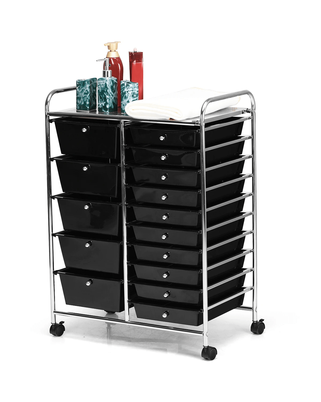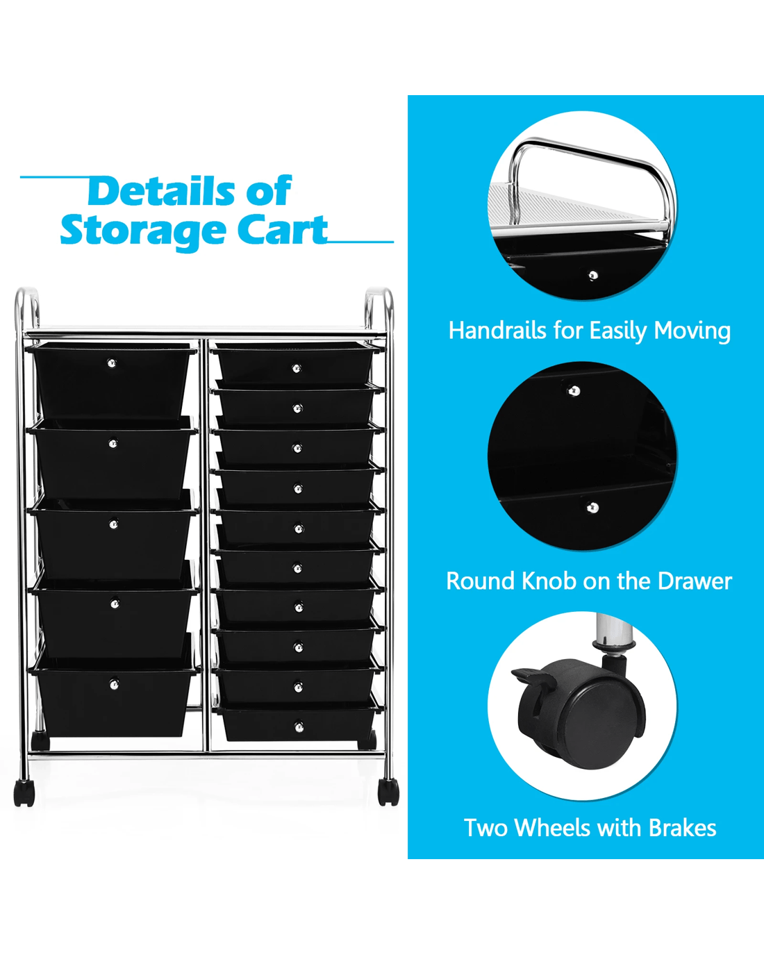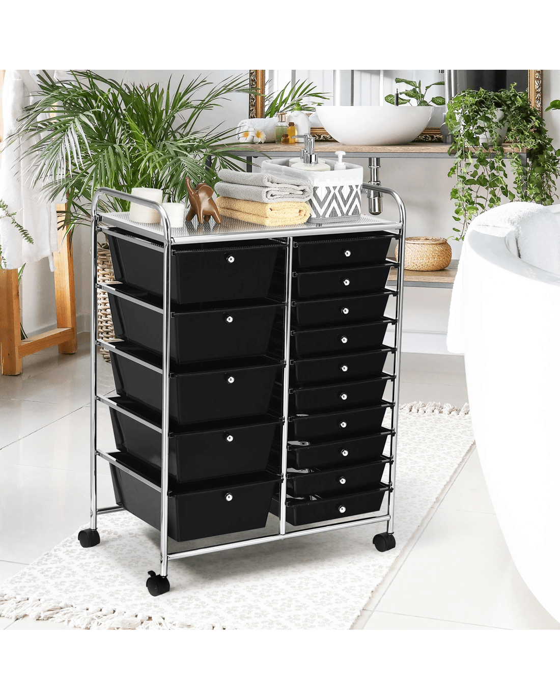 Sold by CostwayCostway 15 Drawers Rolling Storage Cart Mobile Utility Trolley - Black