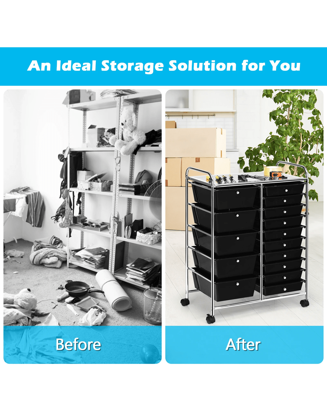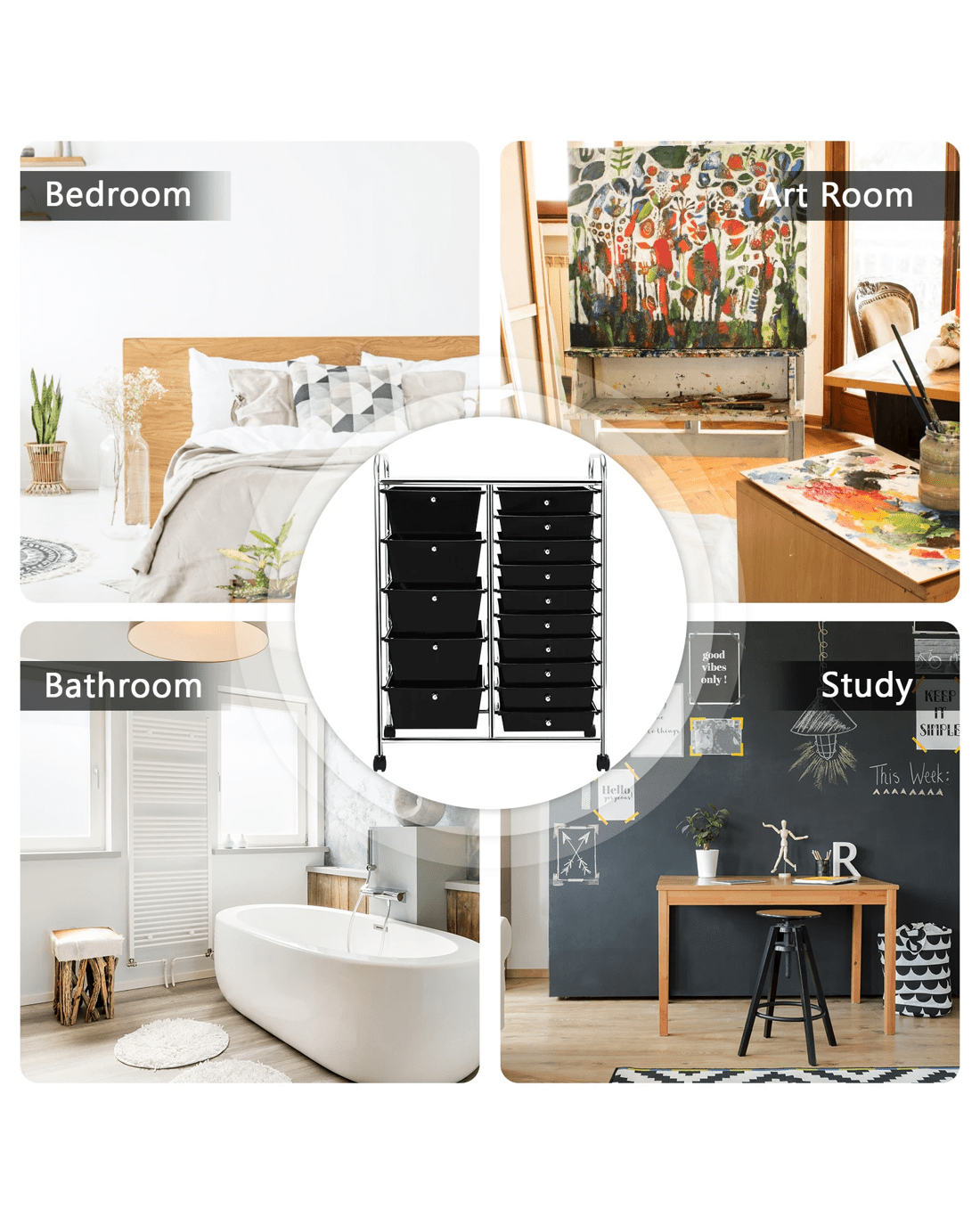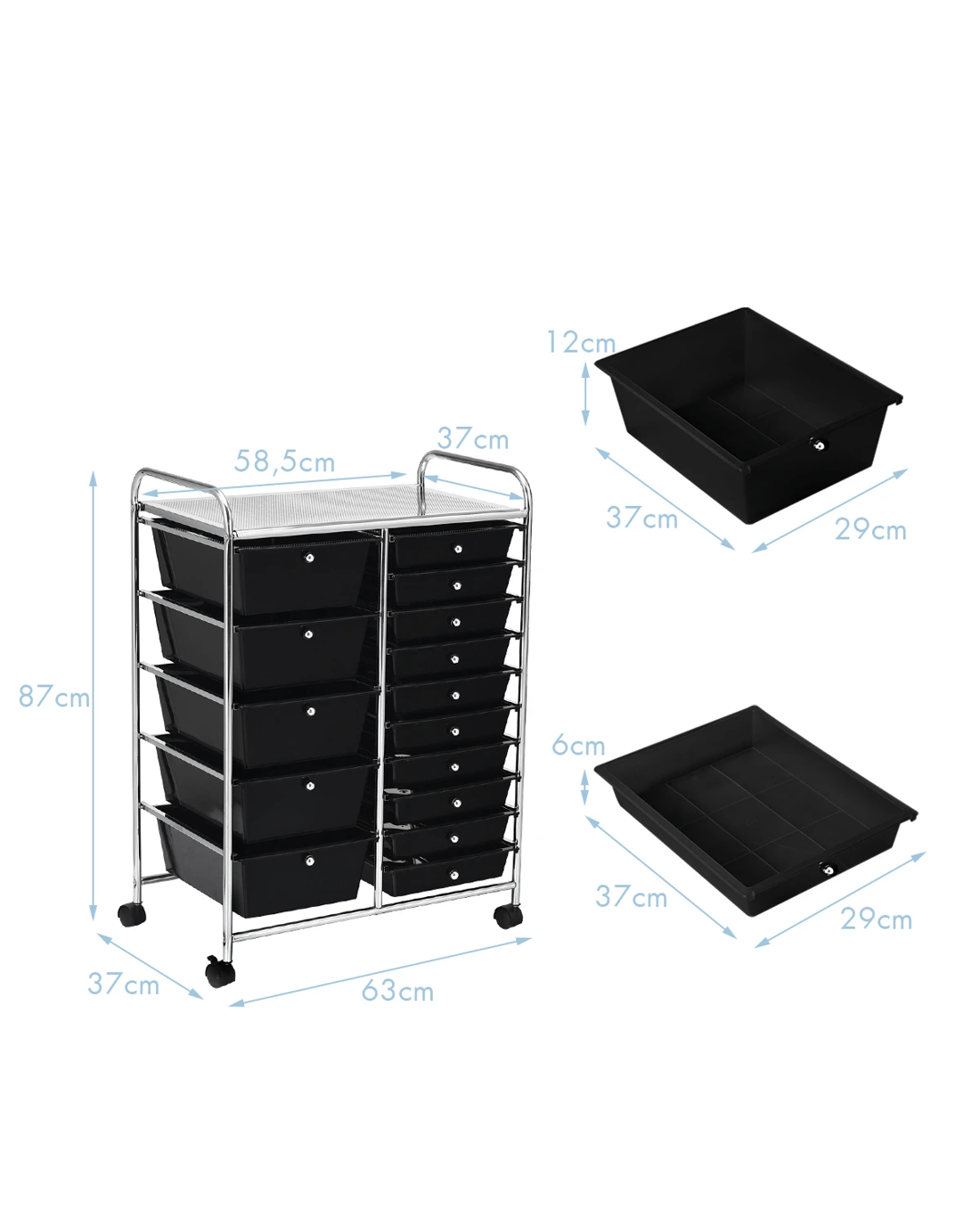 Sold by CostwayCostway 15 Drawers Rolling Storage Cart Mobile Utility Trolley - Black
