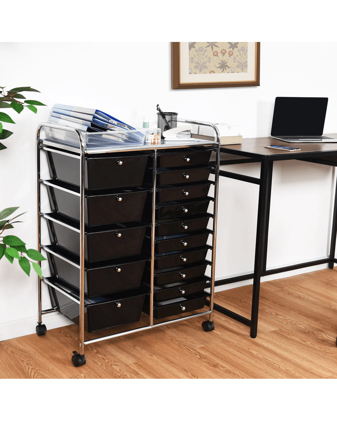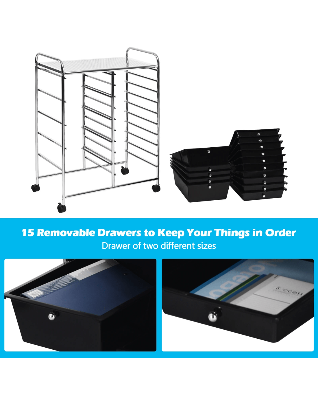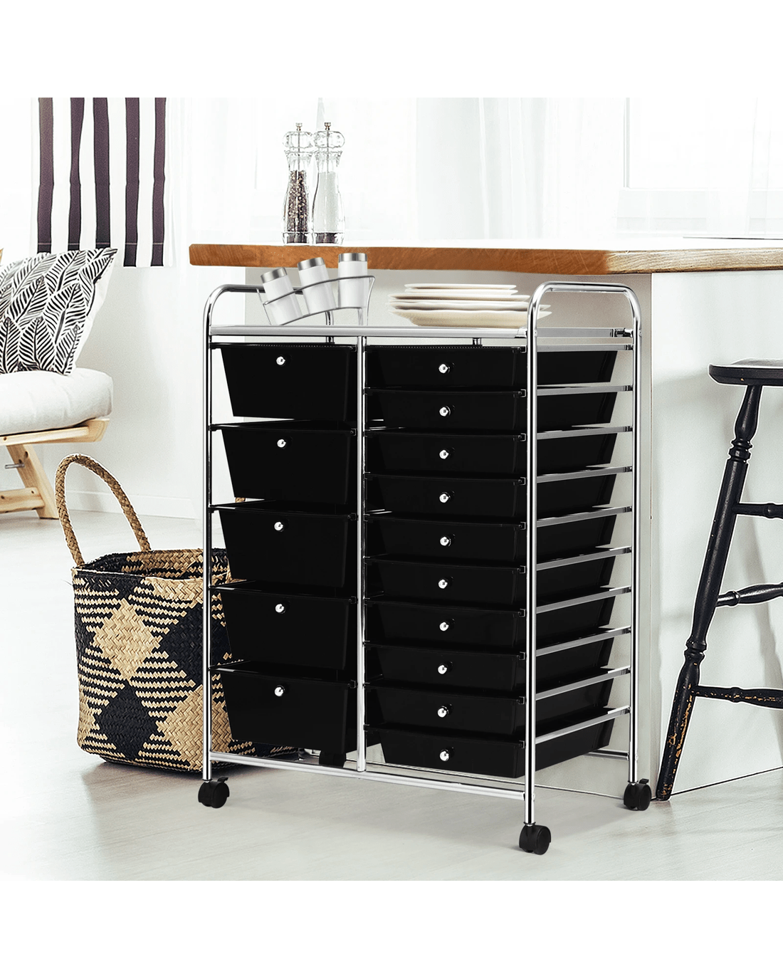Do you want to have a storage cart which can be rolled smoothly from one place to another?Our 15-drawer rolling storage cart will provide enough storage space for you.