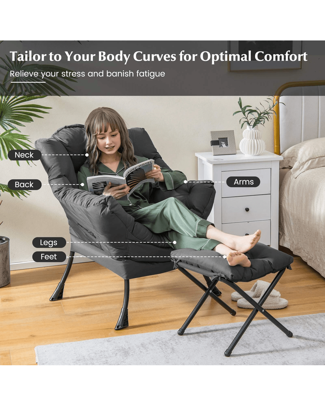 Soak in the wonderful leisure time with this modern lazy chair and ottoman set!