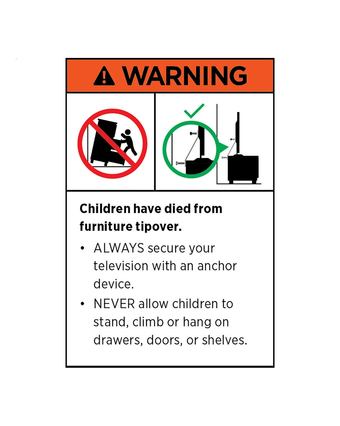 - Never allow children to stand, climb or hang on drawers, doors, or shelves.