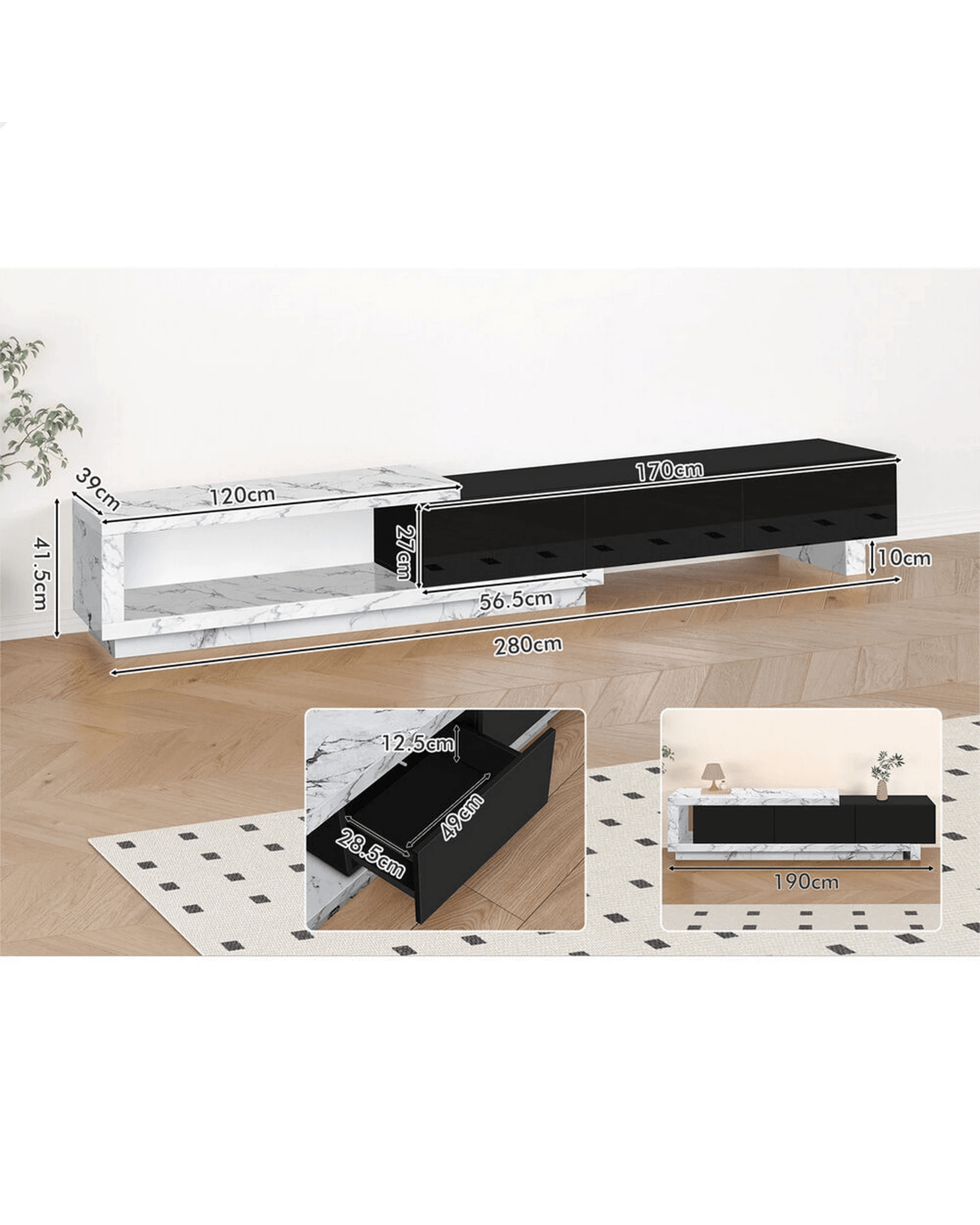 Sold by Aussie Union GroupAlfordson 190-280cm Extendable Entertainment Unit TV Stand Cabinet Drawer - Marble Black