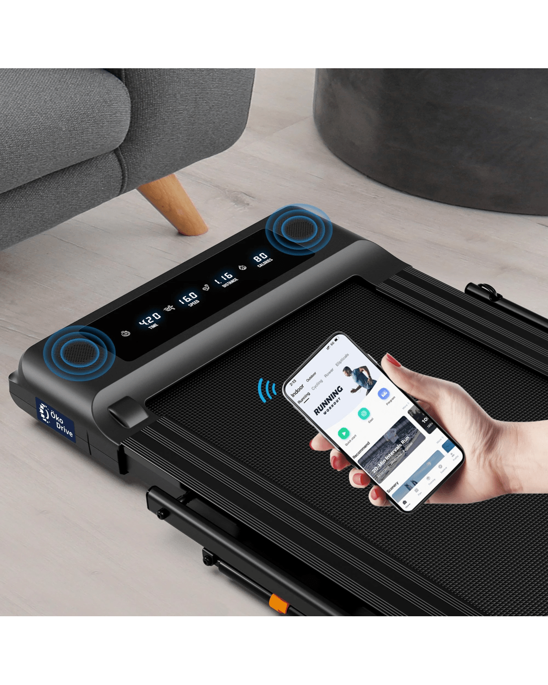 Powered by a 3.3HP OkoDrive motor, this 2-in-1 treadmill seamlessly transitions between Walking Pad Mode (handrails folded with speed 1-10KM/H) and Running Machine Mode (handrails upright with speed 1-16KM/H), giving you the perfect pace whether you're warming up or pushing your limits. Also, you can control your workout effortlessly via remote or the FitShow App, syncing real-time stats to track your progress.