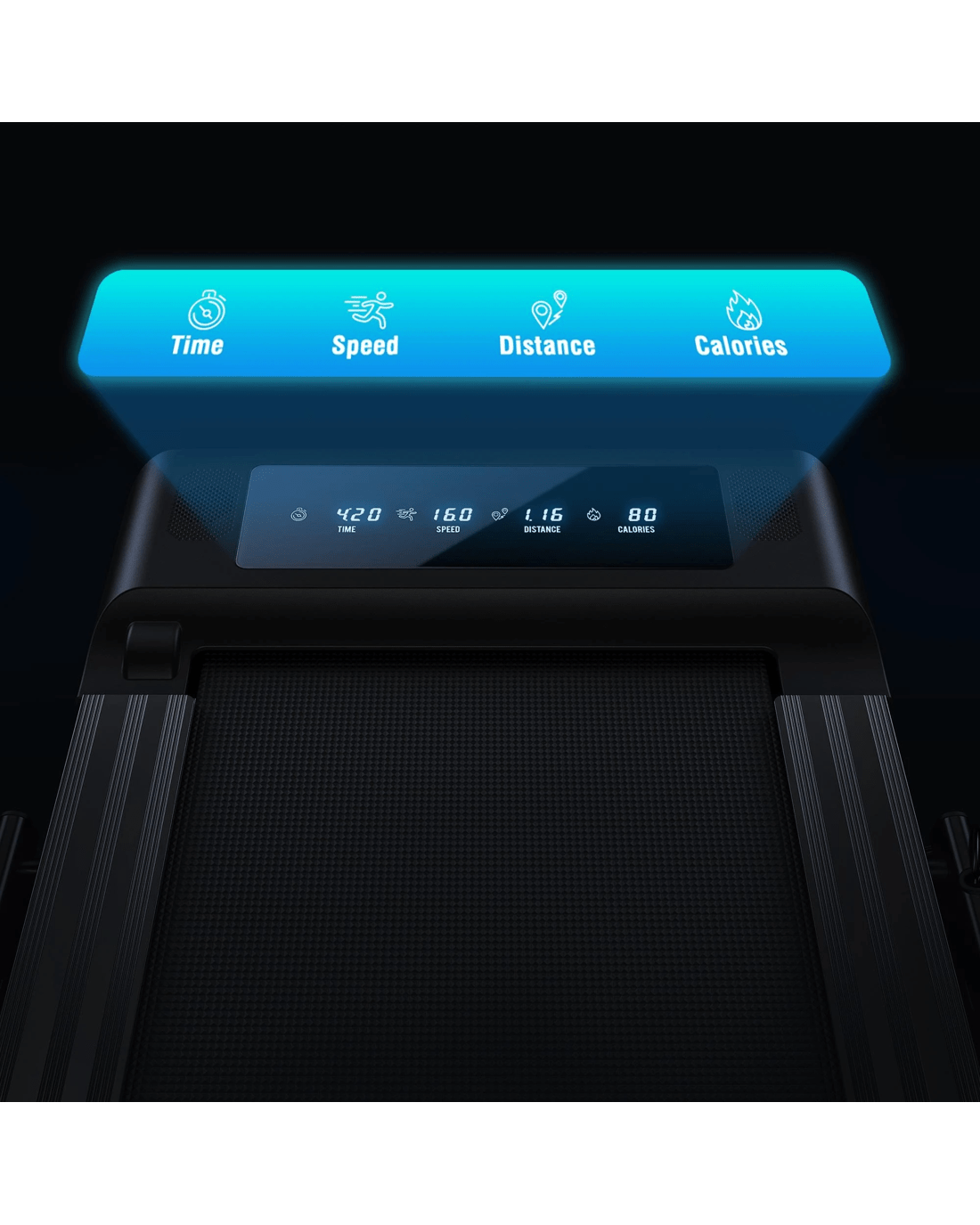 Designed for precision and convenience, the treadmill features an advanced 4-window LCD display that simultaneously shows your workout time, speed, distance, and calories burned - no more waiting for metrics to cycle. Stay fully informed at a glance as you walk or run.