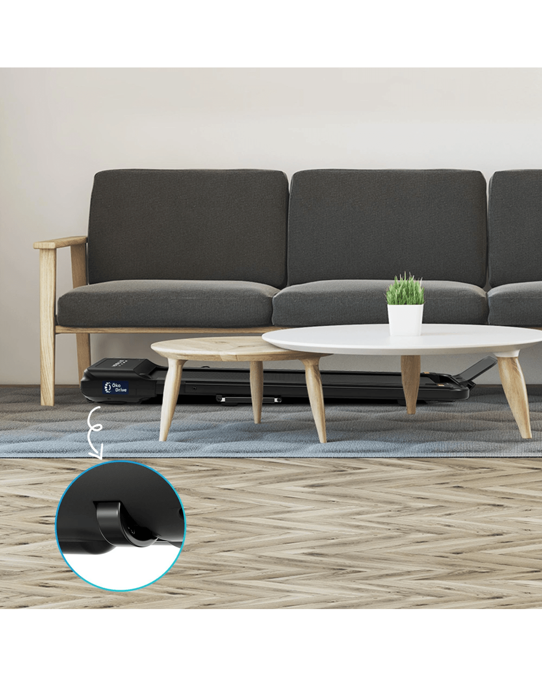 Our walking pad is equipped with rubber shock absorbers, specifically designed to reduce impact during workouts. This advanced cushioning system not only stabilizes the treadmill for safer use but also protects your floors from scratches and vibrations?????ideal for maintaining a quiet, low-impact environment in homes, apartments, or offices.