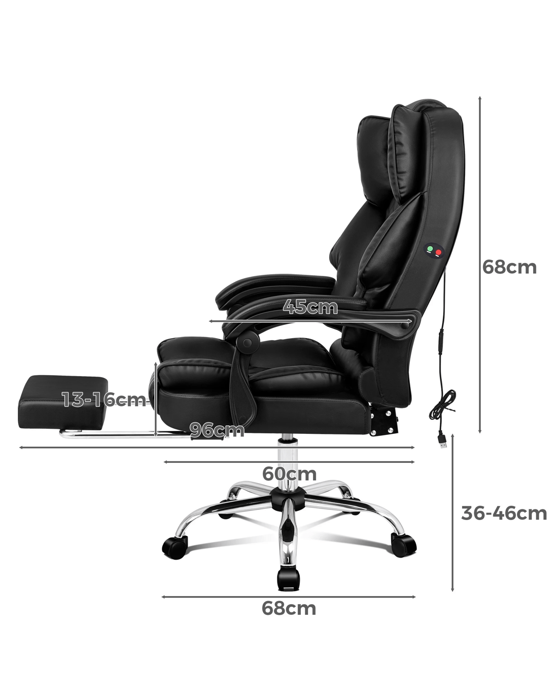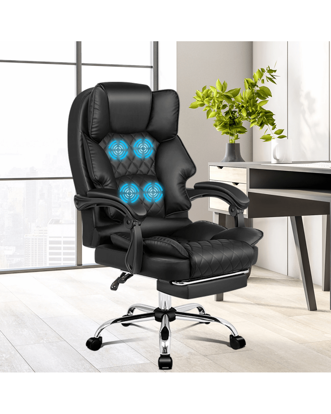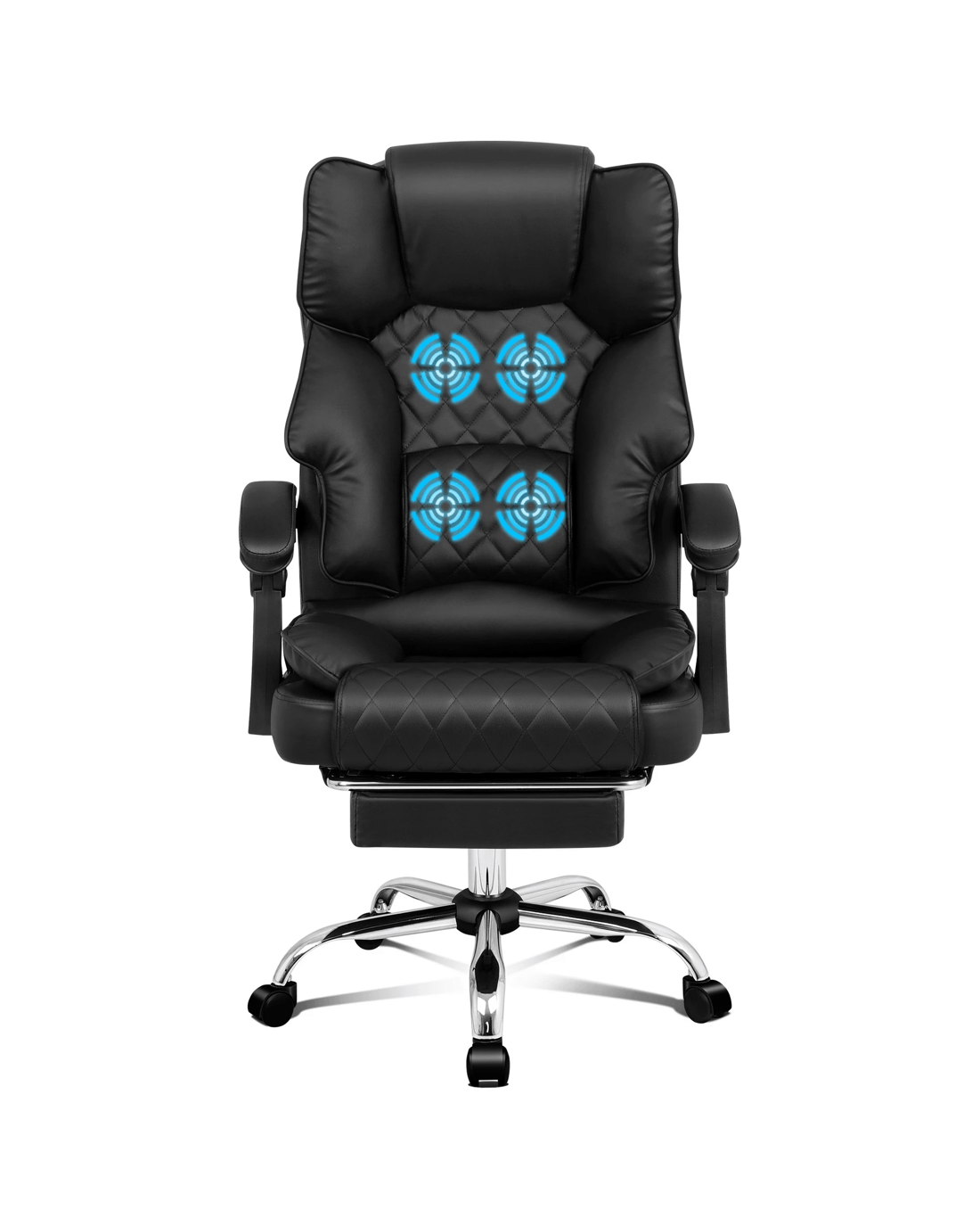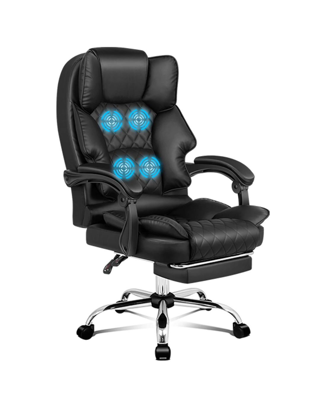 Crafted with innovation in mind, we upgraded the chair with 4 massage points, allows you to work at your peak for long periods of time in optimal comfort. Built with premium PU leather, generous foam paddings and ergonomically-friendly design, our chair provides your entire body with ample support in all the right places. The chair perfectly combines both comfort and style.