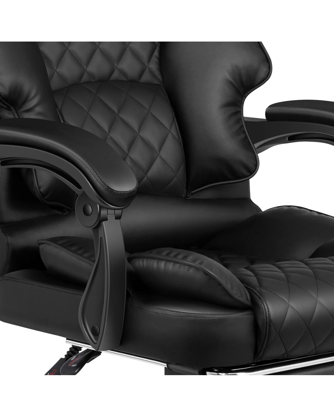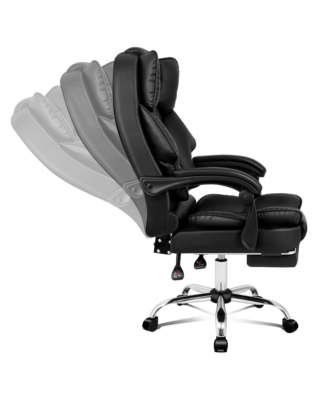 A stylish chrome base with Gas-Lift system and tilt function, delivering absolute five star luxury. And unlike some other sellers, we have no compromise on materials Use - guarantee that no cycled foams are Use - backrest is cut short or narrow to save money, and no seat foam is cut thin to save cost.