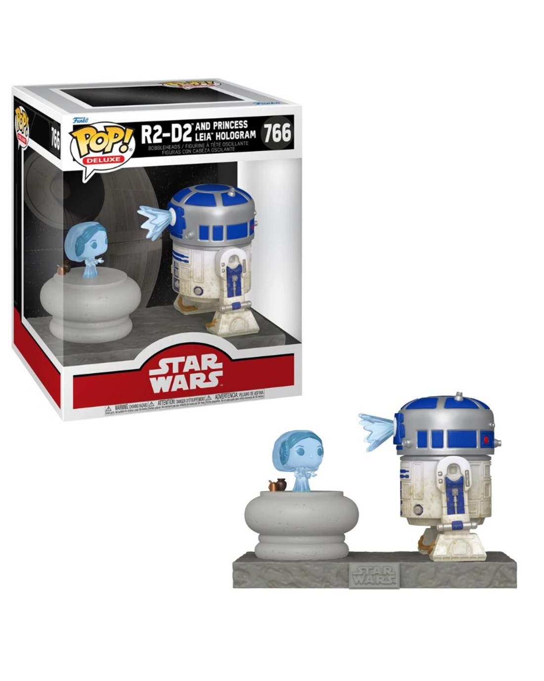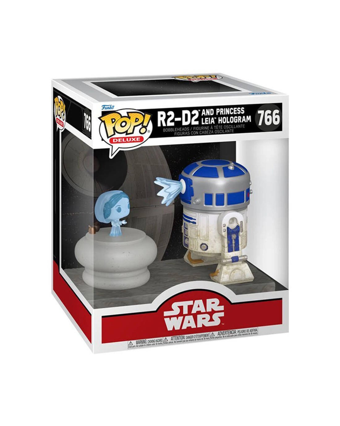 Celebrate the most stellar fandom of all with this POP! Deluxe R2-D2 and Princess Leia Hologram! Complete your Rebel Alliance by welcoming this droid into your Star Wars collection. Vinyl bobblehead is approximately 3.95-inches tall. Ages: 3+