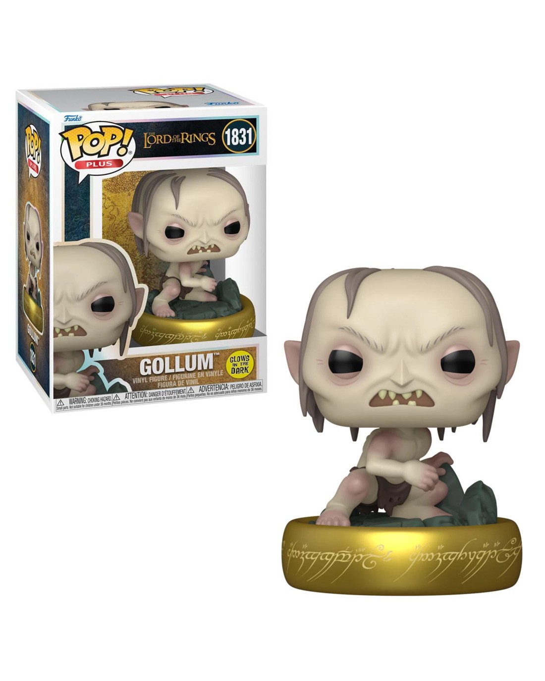 Form a Fellowship in your The Lord of the Rings collection with POP! Plus Gollum! This POP! Plus collectible features POP! Gollum atop a One Ring pedestal, complete with glow-in-the-dark inscriptions. Commemorate a legendary adventure when you welcome this creature into your home. Vinyl figure is approximately 3.7 in (9.4 cm) tall. Ages 3 +