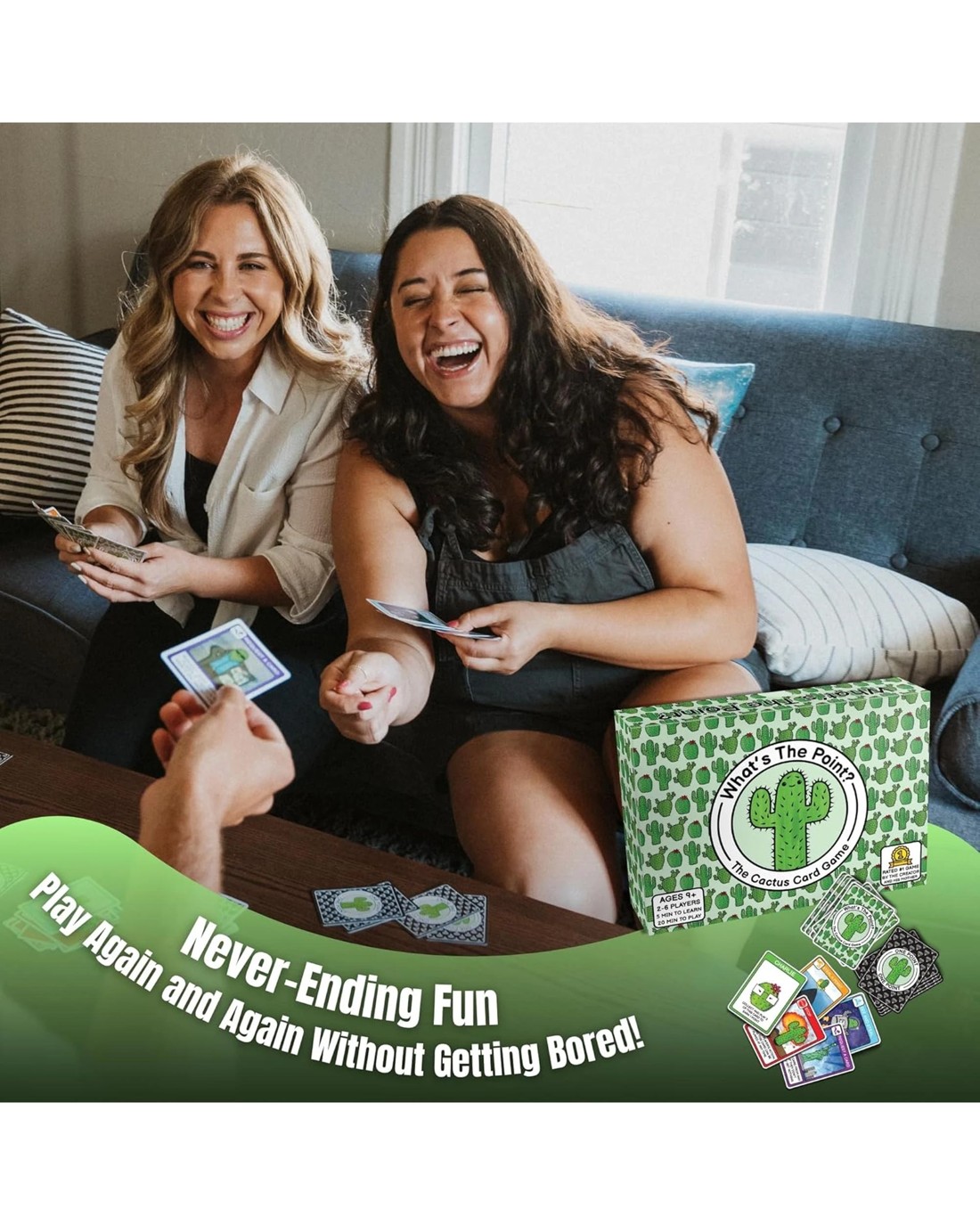 What's The Point is the perfect card game for adults, teens and kids.Your objective is to match and collect sets of Cacti to earn POINTS!Use a variety of ACTION CARDS to gain an advantage over your friends.This game is highly strategic and perfect for anyone.It's one of those "Just one more round" kind of games.' - P.A.S."Way better than UNO or that one game that's an inappropriate version of Apples to Apples" - Mom.Game Design and Illustrations by Ryan Wallace (A broke college student).CACTI LOADED!!!Item Specifics