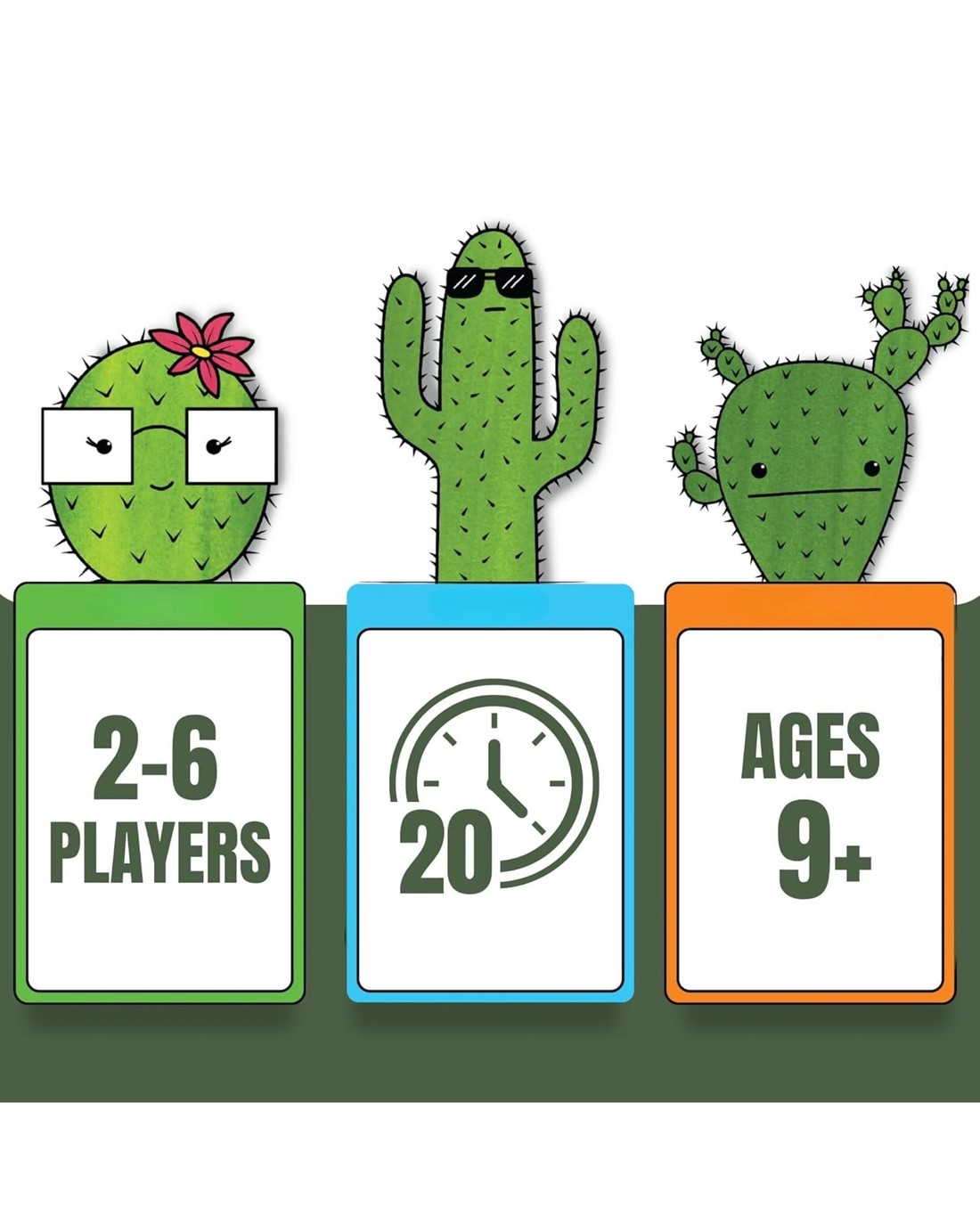 What's The Point? is an exciting, family-friendly, and cacti-loaded card game! Your objective is to match and collect sets of cacti to earn points. Use a variety of action cards to gain an advantage over your friends, such as unleashing a SEE AND STEAL, allowing you to look at another player's hand and steal any card of your choice. Protect yourself from harm by playing a STOP card, forcing any action to stop in its tracks. What's The Point? is a simple strategy game you'll be stuck on! This is a must-have for any game collection. Ages: 9 + | Players: 2 - 6 | Playtime: 20 Mins