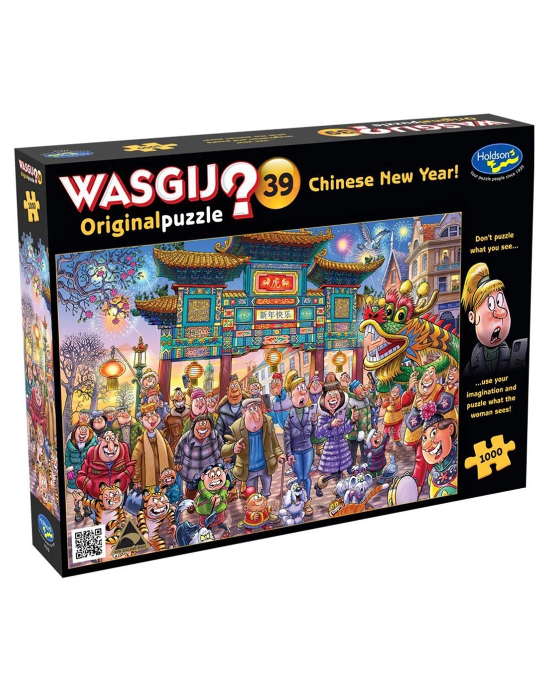 Wasgij Original is the 'what are they looking at?' puzzle concept where you have to use your imagination and the clues provided to piece together what the characters in the image printed on the box are looking at.....Chinese New Year celebrations are lighting up the streets, with crowds gathering to welcome the Year of the Tiger and enjoy the fun and fireworks, but what could possibly stop the fearsome tiger-themed parade in its tracks? What has the woman with the smartphone seen that could've caused her jaw to drop? That is the image you need to puzzle. Ages: 8 +