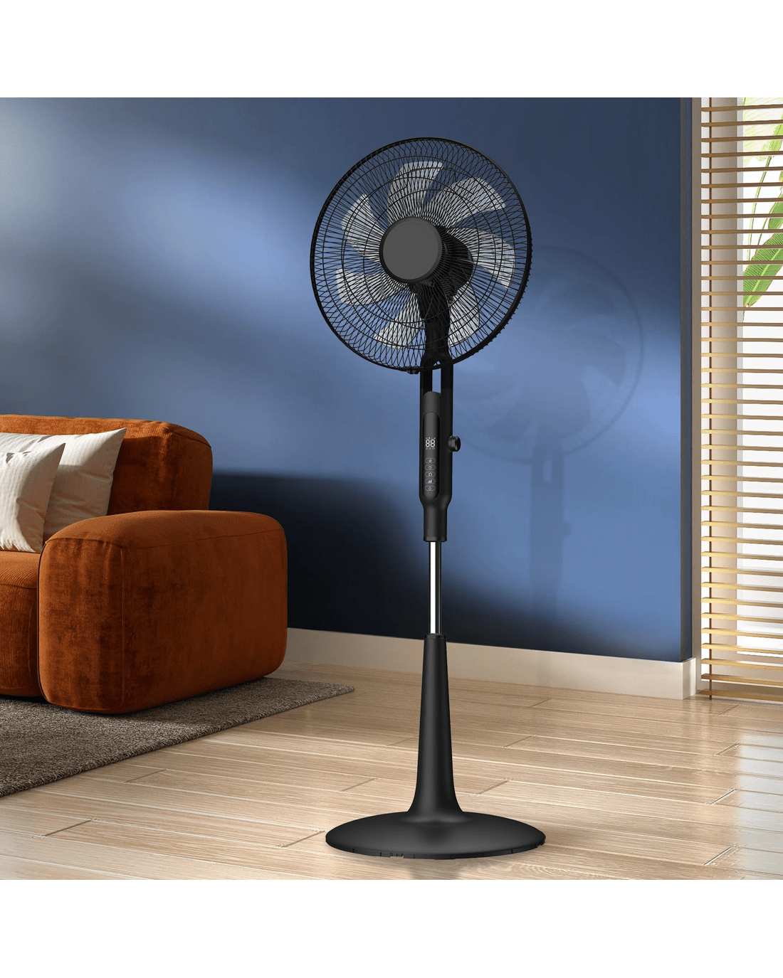 Experience personalised cooling like never before with the advanced Spector Pedestal Fan. Featuring an impressive 28 fan speeds and three distinct modes, this pedestal fan gives you complete control over your comfort. The sleek design is complemented by a modern LCD display and intuitive touch panel, while the remote control adds convenience from across the room—perfect for bedrooms, offices, or living spaces.