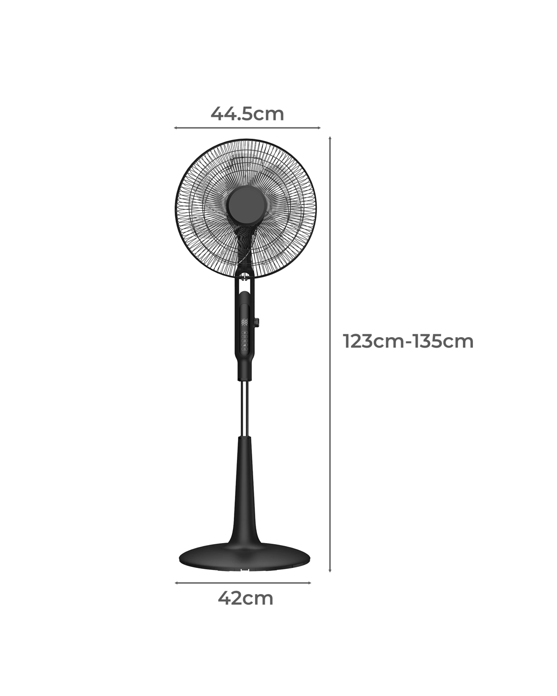 Its powerful 40W motor works quietly and efficiently, and the wide 150° oscillation ensures air is evenly distributed throughout the room. Designed with ease in mind, this pedestal fan is lightweight, simple to clean, and equipped with a built-in timer for energy-saving operation day or night.
