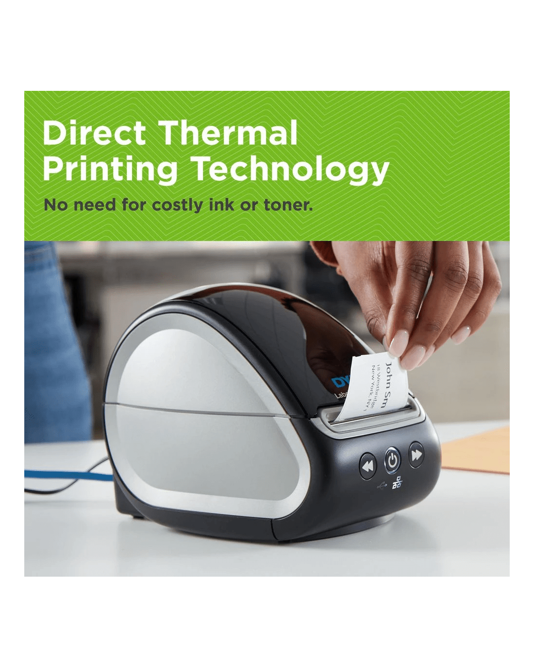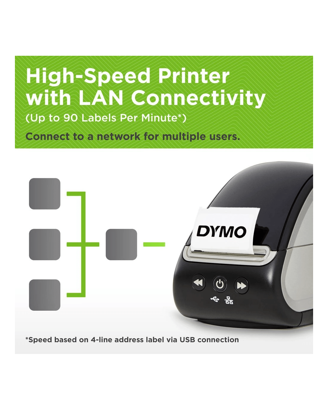 The new and improved high-speed DYMO LabelWriter 550 Turbo can be connected to your PC or Mac computer for printing labels. This printer is an efficient and cost effective solution for your professional mailing, filing, visitor management and other labeling needs. This printer also allows features LAN network connectivity.