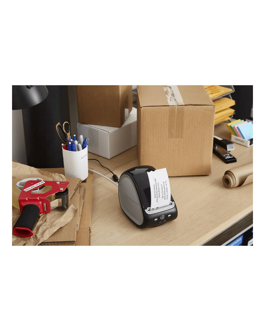 • In the box you'll find a DYMO LabelWriter 550 Turbo Label Printer, 1x Address Labels Starter Roll, Adapter, Power Cable, USB Cable and a Quick Start Guide.