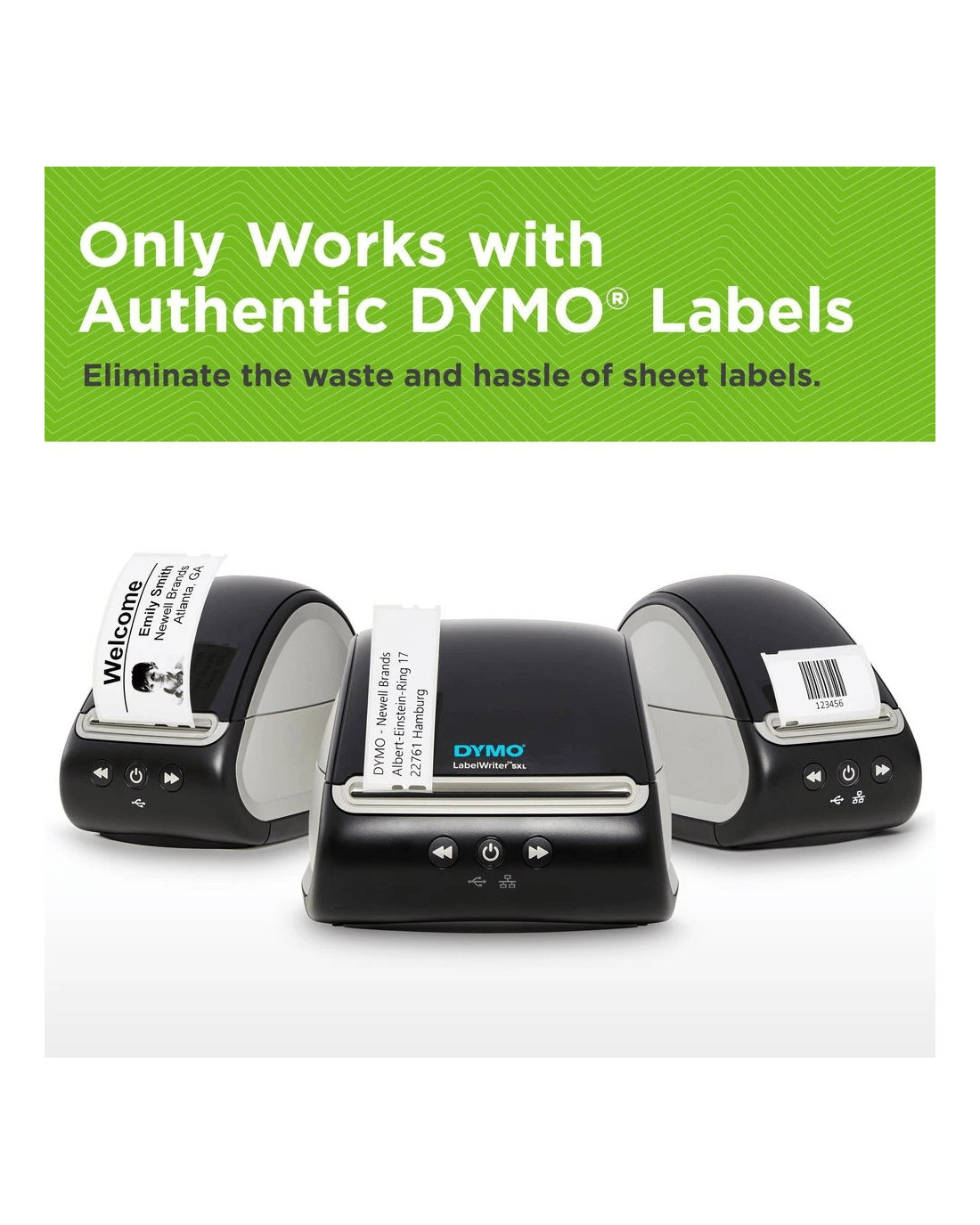 • Only works with DYMO® Authentic LabelWriter™ Labels, available in a variety of sizes, colours, and materials. The labels are BPA-free and FSC certified.