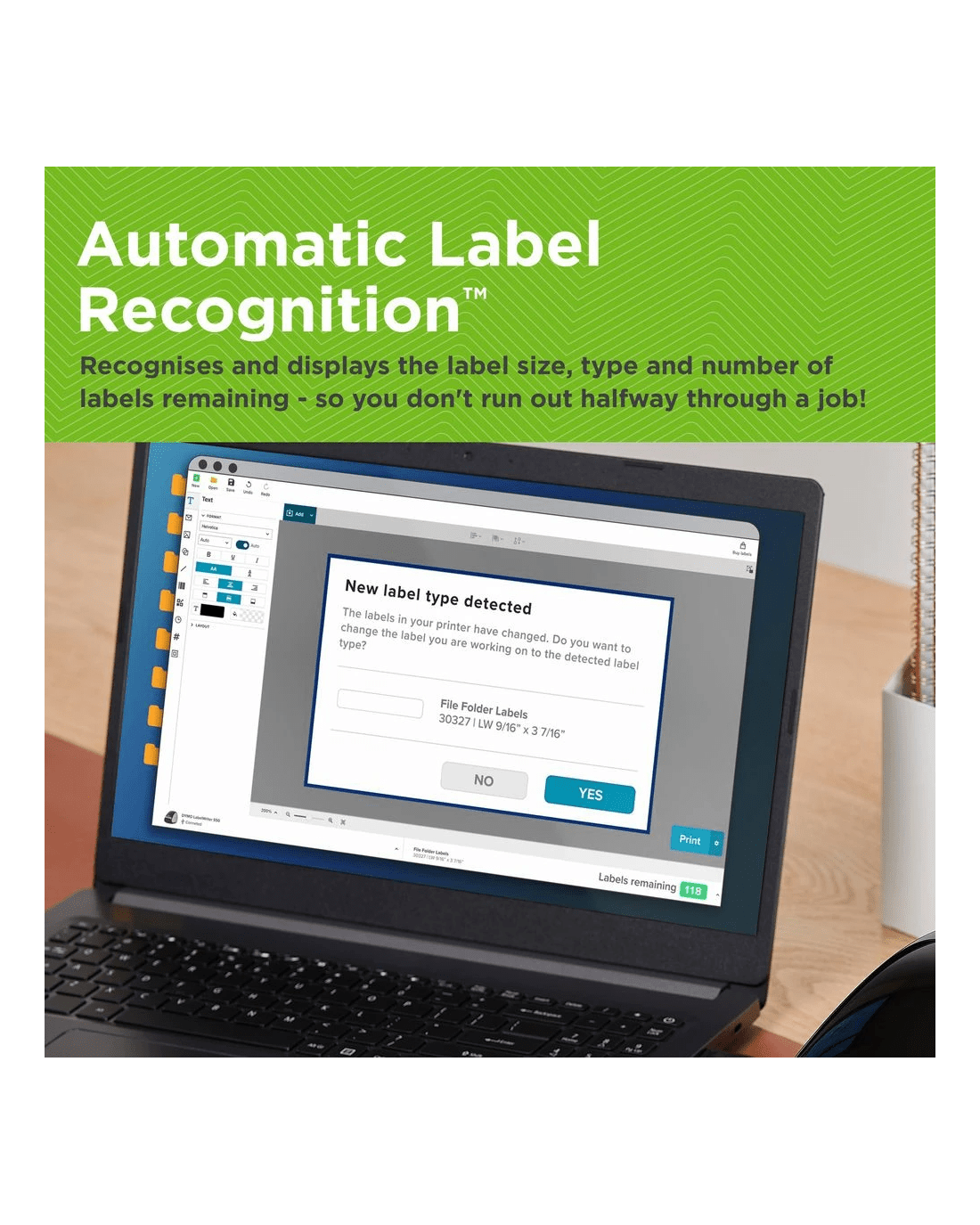 • It features the new Automatic Label Recognition function - see the size, type, and number of remaining labels at a glance.