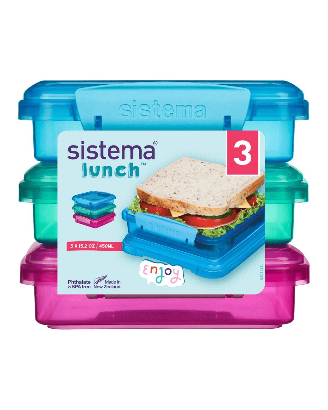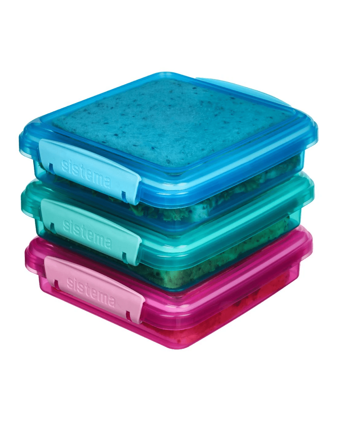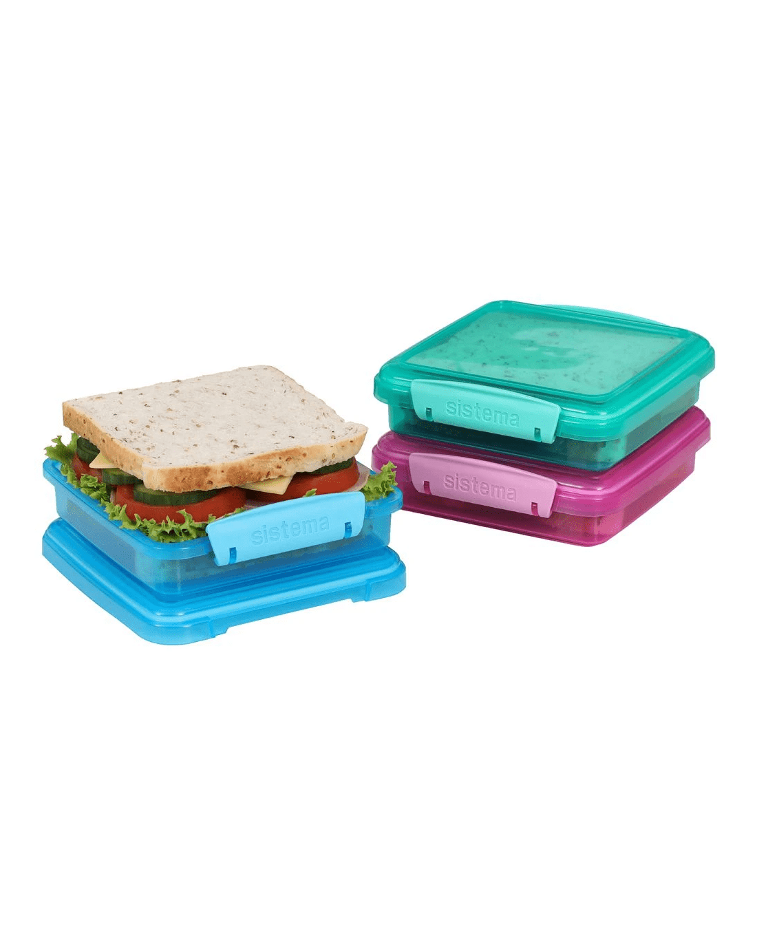 Sold by OfficeworksSistema Sandwich Box To Go 450mL 3Pk Pink/Blue/Teal