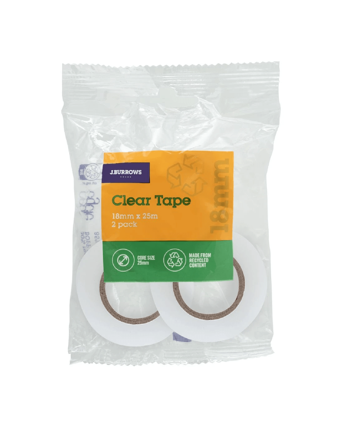 Sold by OfficeworksJ.Burrows Clear Tape 18mm x 25m 2 Pack