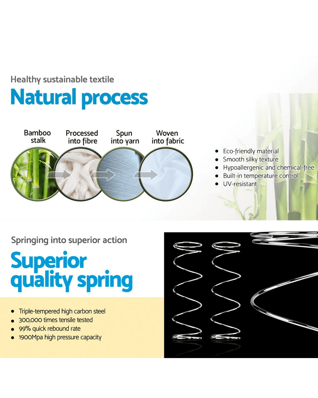 The Giselle Bedding Alanya Series features a 34cm profile with medium-firm support, designed for adaptive comfort. Its 500g bamboo charcoal knitted fabric promotes a fresher sleep environment, while plush Euro Top padding enhances surface cushioning. The mattress core integrates 5-zone pocket springs with independent 6-turn coils for targeted spinal alignment, complemented by high-density foam for lasting structural support. This combination delivers balanced pressure relief tailored to Australian sleep preferences