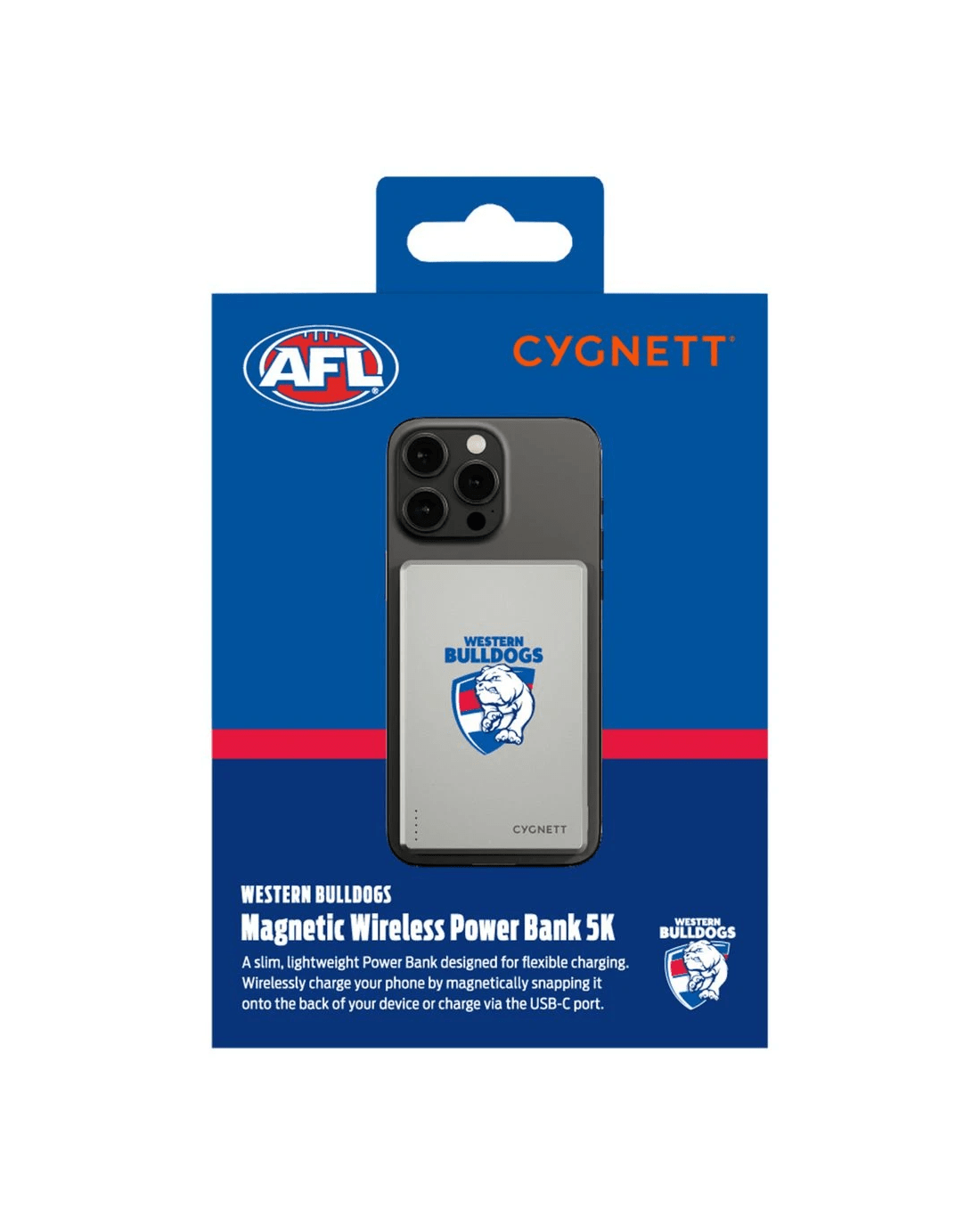 - This powerbank is Officially Licensed by the AFL and has a Western Bulldogs design.