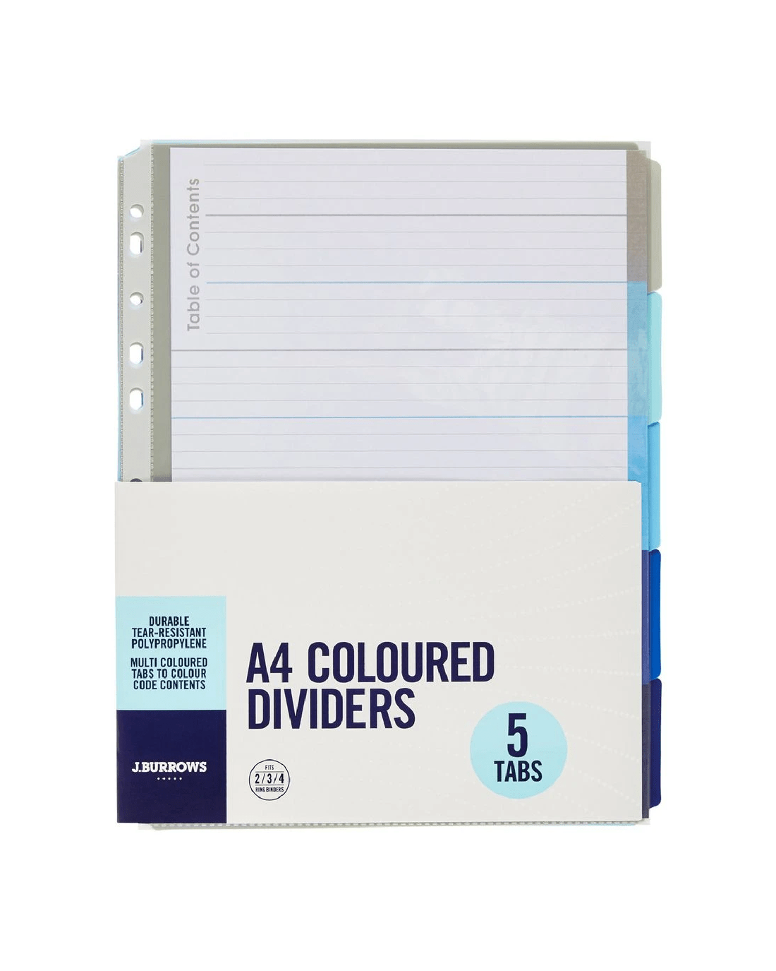 These J.Burrows Premium 5 Tab Index Dividers are perfect for separating and organising your A4 documents. The dividers come in cool colours so you can colour code your index and easily locate your documents when you need them.