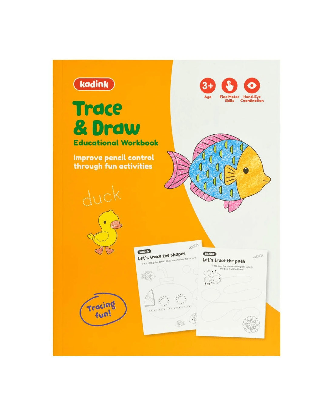 This Kadink Trace and Draw Workbook is a great way for learners to strengthen their pencil control and motor skills. It uses dot-to-dot, spot the difference, drawing and colouring activities to teach learners to draw shapes as well as trace shapes and letters.