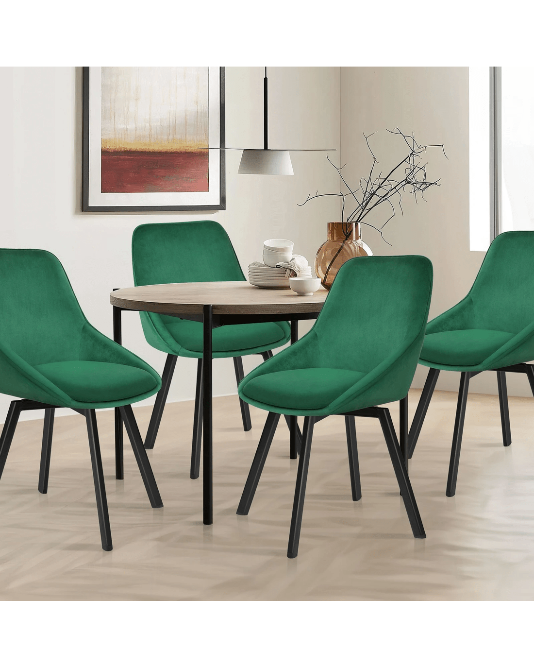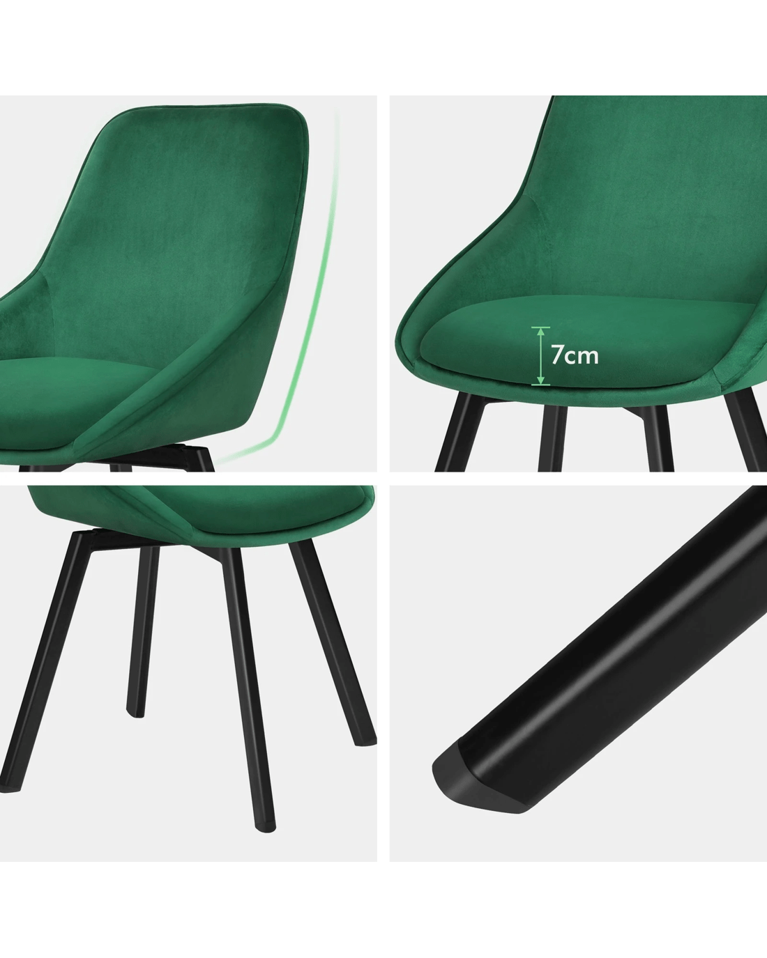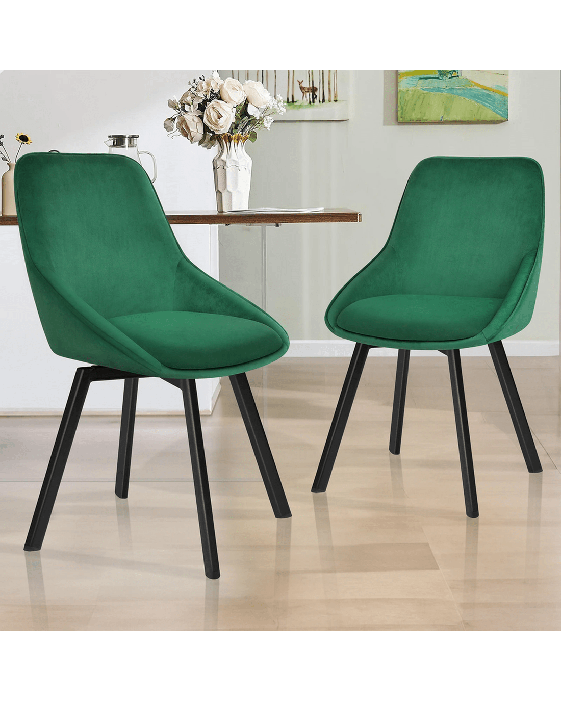 Designed with a blend of comfort and elegance, this accent chair invites you to dine in relaxation. Upholstered in premium velvet fabric, the seat and backrest are padded with high resilient foam. Combining its curved backrest, the kitchen chair offers a delightful seating experience. Together with its heavy duty and swivel mechanism, this chair can be rotated all around for easy facing in any direction, which makes your conversations smoothie.