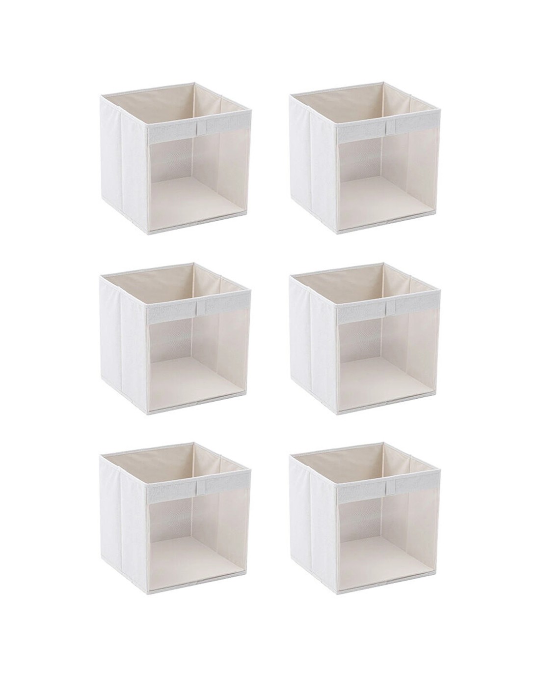This set includes six durable fabric storage cubes, each measuring 30 x 30 x 30 centimetres, making it ideal for organising wardrobes and other storage spaces. The cubes are crafted from a light, durable material and feature an open-top design for ease of access and storage convenience.