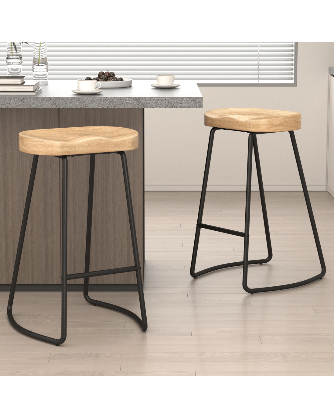 With an eclectic mix of wood and metal, this retro bar stool is designed to match with any furniture taste and introduce a vintage charm to your home. Backless barstool often gives a cleaner and sleeker look. They are also perfect if you are looking to save space and prefer to keep stools hidden beneath your counter.
