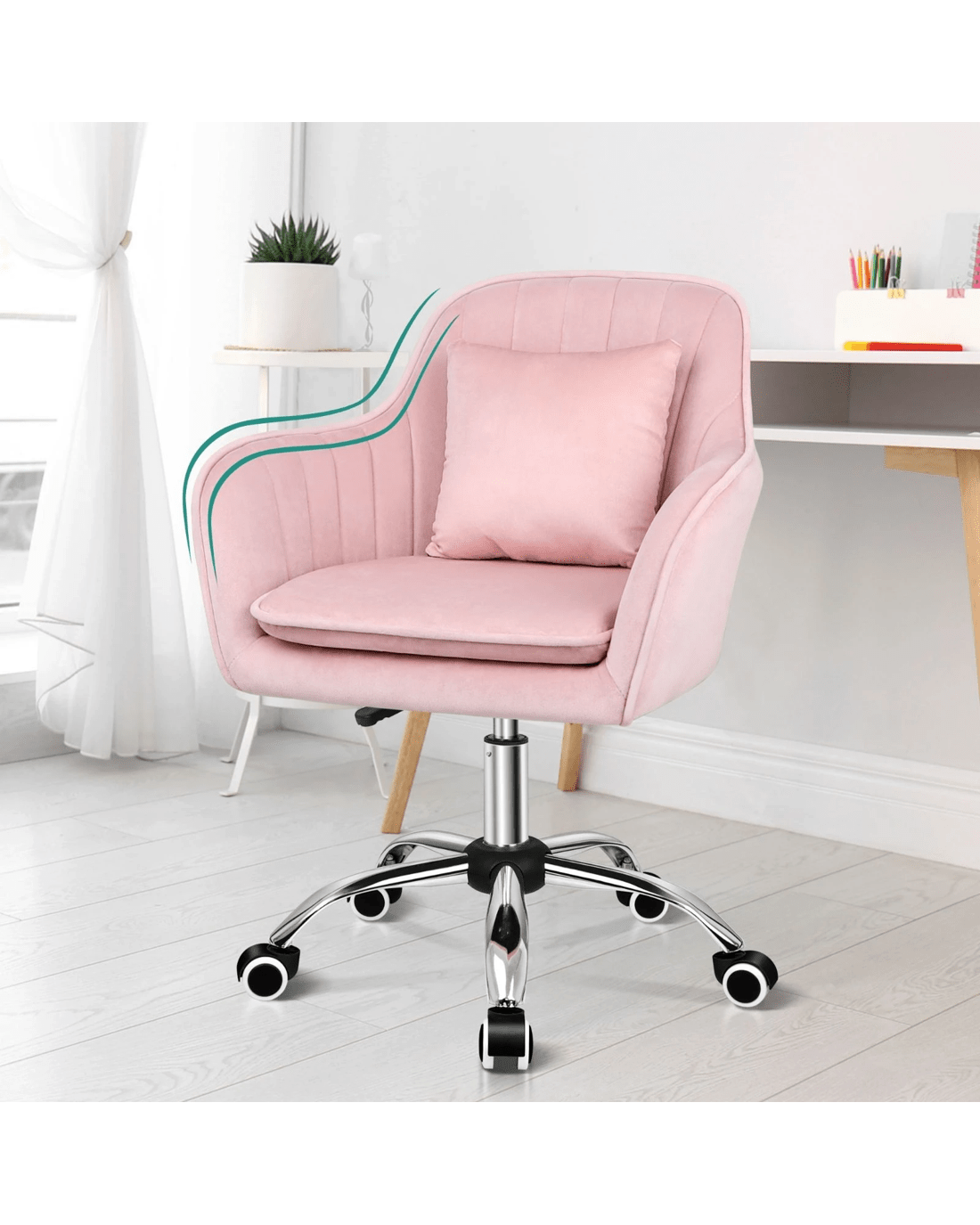 Sold by Aussie Union GroupAlfordson Velvet Office Chair Computer Swivel Armchair Work Adult Kids - Pink